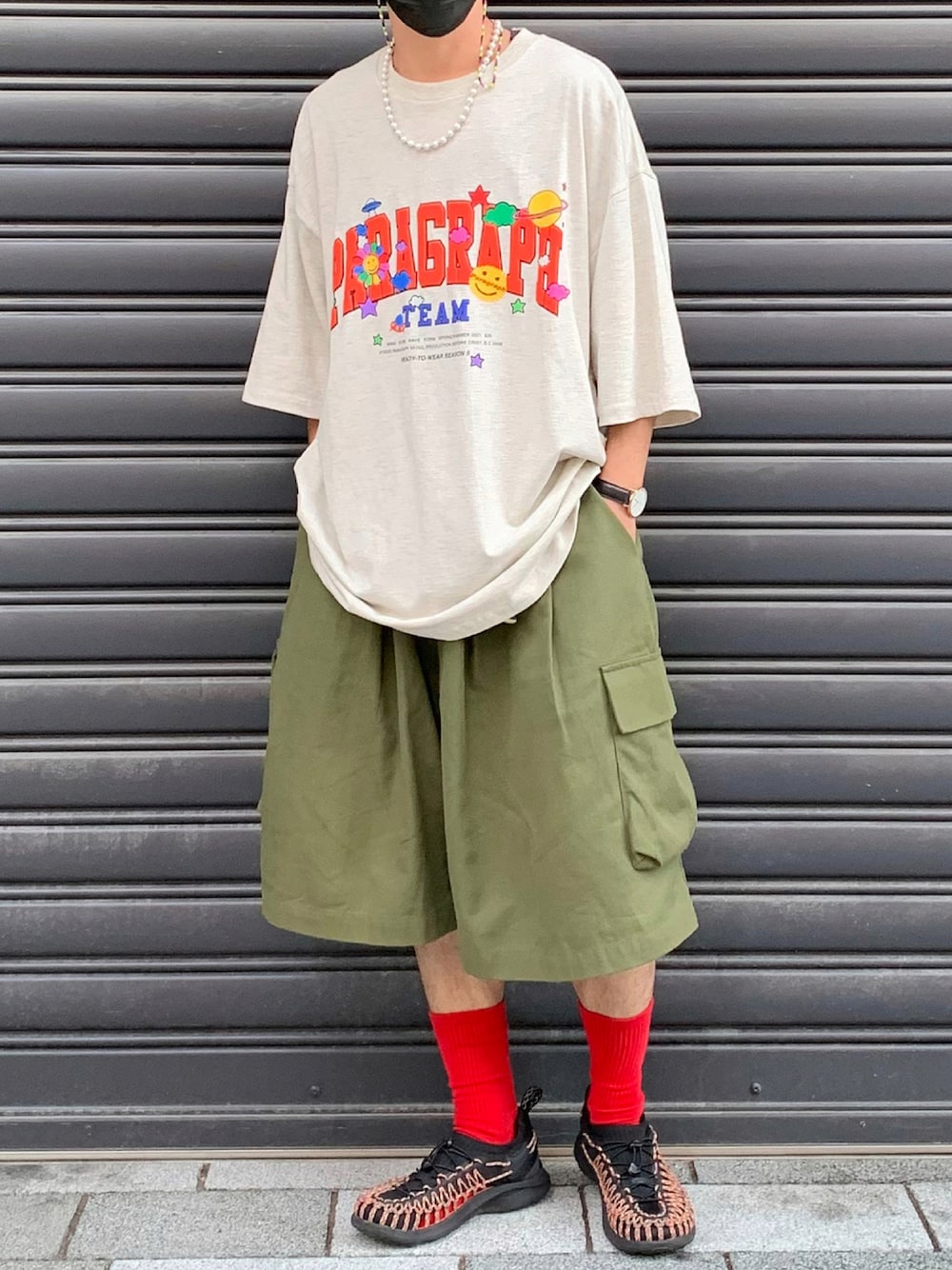 大人気paragraph❤️🔥 しっかりと買ってしまいました😇 キナリとカーキで合わせ、 ロゴの赤をソックスで拾っています! keen×BEAMSのサンダルは一見派手ですが、 全体のコーデを引き締めてくれ すごく万能でおすすめです🔥🔥🔥
