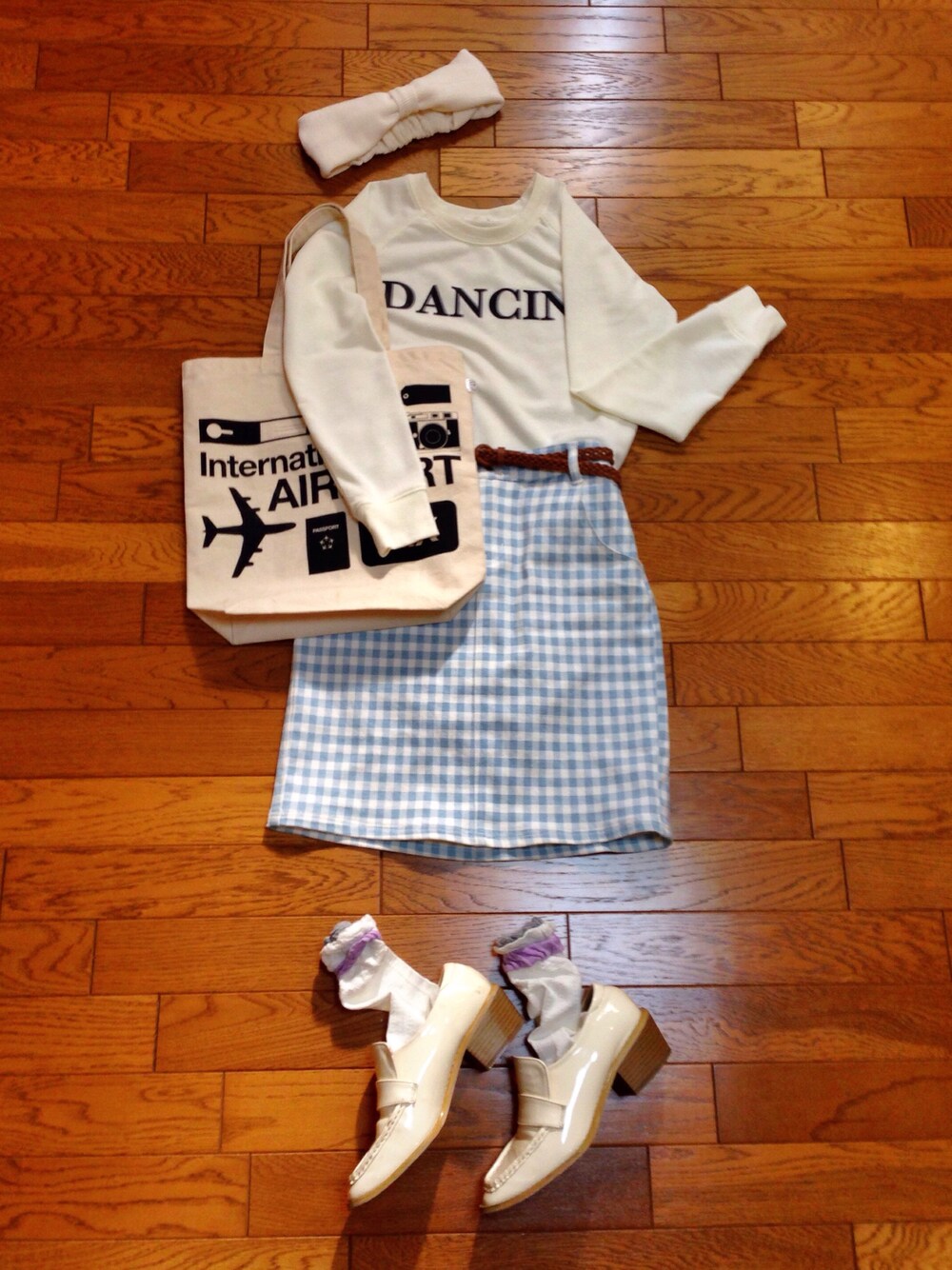 Tシャツ&スカート&靴:RETROGIRL バック:空港にて購入 飛行機のデザインが可愛くて思わず買ってしまったトートバック。 春の爽やかコーディネート*:..。o○☆゚・