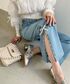 【158cm/骨格ナチュラル/イエベ春】全てMサイズ着用。ブルーでまとめた爽やか夏コーデ🌻🩵ブラウスはフリルが華やかで小顔効果抜群🙆♀️!ウエスト部分後ろにだけゴムが入っているので前からはすっきりした印象にしてくれます👍🏻スリットとパールが可愛いデニムはスタイルアップ効果があります💫[Instagram→@n.h.__75]