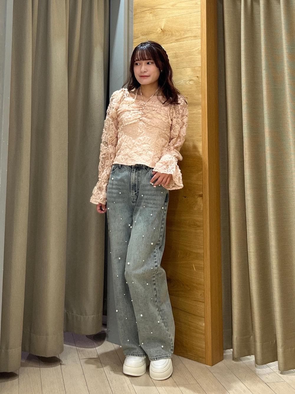 【158cm/骨格ナチュラル/イエベ春】全てMサイズ着用。ぱっと華やかな印象にしてくれるレースブラウス🙌🏻💖オフショルとしても着られるアイテムですが、骨格ナチュラルさんや肩幅の気になる方などはオフショルにしない着方がおすすめかもしれません💭!ピンクはデニムと合わせて甘めカジュアルに着るのが可愛いです➰💗[Instagram→@n.h.__75]