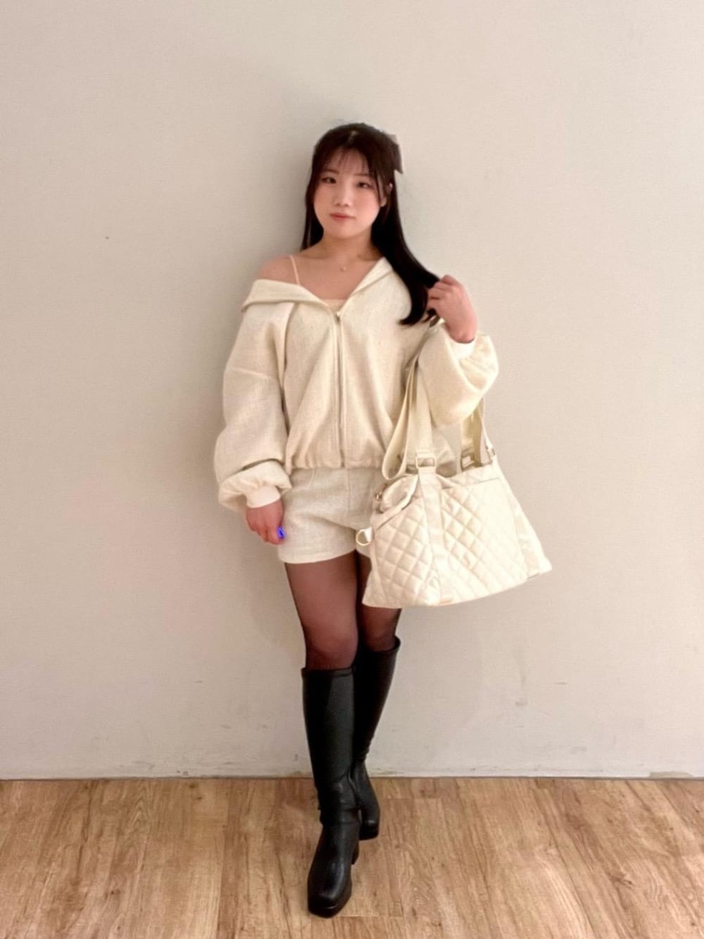 春のお出かけコーディネートです❕ 春アウターをオシャレに着こなせるセットアップになっています✨ ブルゾンはしっかり着ても可愛いですが、少し肩に落として抜け感を出すと🙆🏻♀️より春っぽく着こなせます🍒 ゆるっとラフに着ていただけるので、空港コーディネートとしてもプチ旅行コーディネートにもおすすめのセットアップです🙌🏻💓
