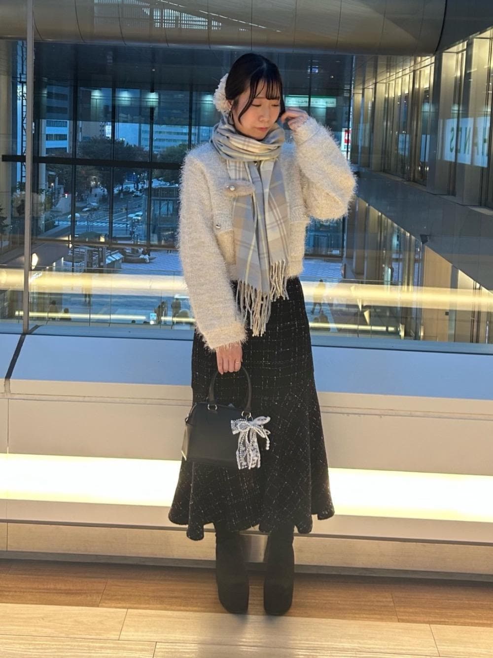 おすすめキレイめコーデです✨️ カーデは高見え間違いない素材感とボタンのデザインで冬の特別な日にぴったりです😊重くなくサラッと羽織れちゃいます!! スカートはマジェの定番マーメイドスカート✨締めつけもなくキレイなシルエットに決まります!!