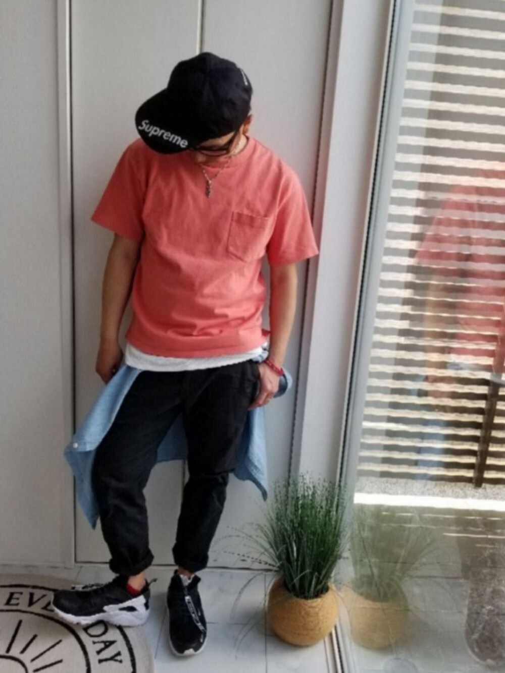 半袖の機会が増えてきました。GUのトップスは生地が厚くて気に入ってます。 ナイキのエアハラチは本革を使ったプレミアム、一目惚れでした。紐じゃなくてジッパーなので履きやすくてお気に入りです。 Supremeのキャップはシンプルだけど大胆なデザインが気に入ってます。