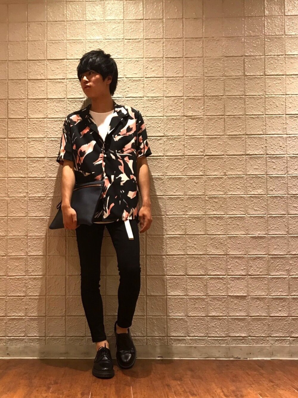 Lui'sで買い物して写真撮ってもらった😂 ボーナス前に良い買い物ができた🙆♂️ 最近、Name×Tomo&coのサンダルしか履いてなかったからDr.Martensすごい新鮮! 柄シャツデビューです😝✨