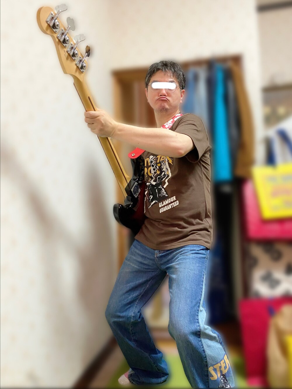 HYSの新作 スージークワトロTシャツを着てロックコーデ!🎸 スージークワトロと同じポーズで 48 Crash🔥 ジャズベ 重ッ 先週痛めた腰がやっと治りかけてたのに、またcrashしそう…🤣🤣🤣