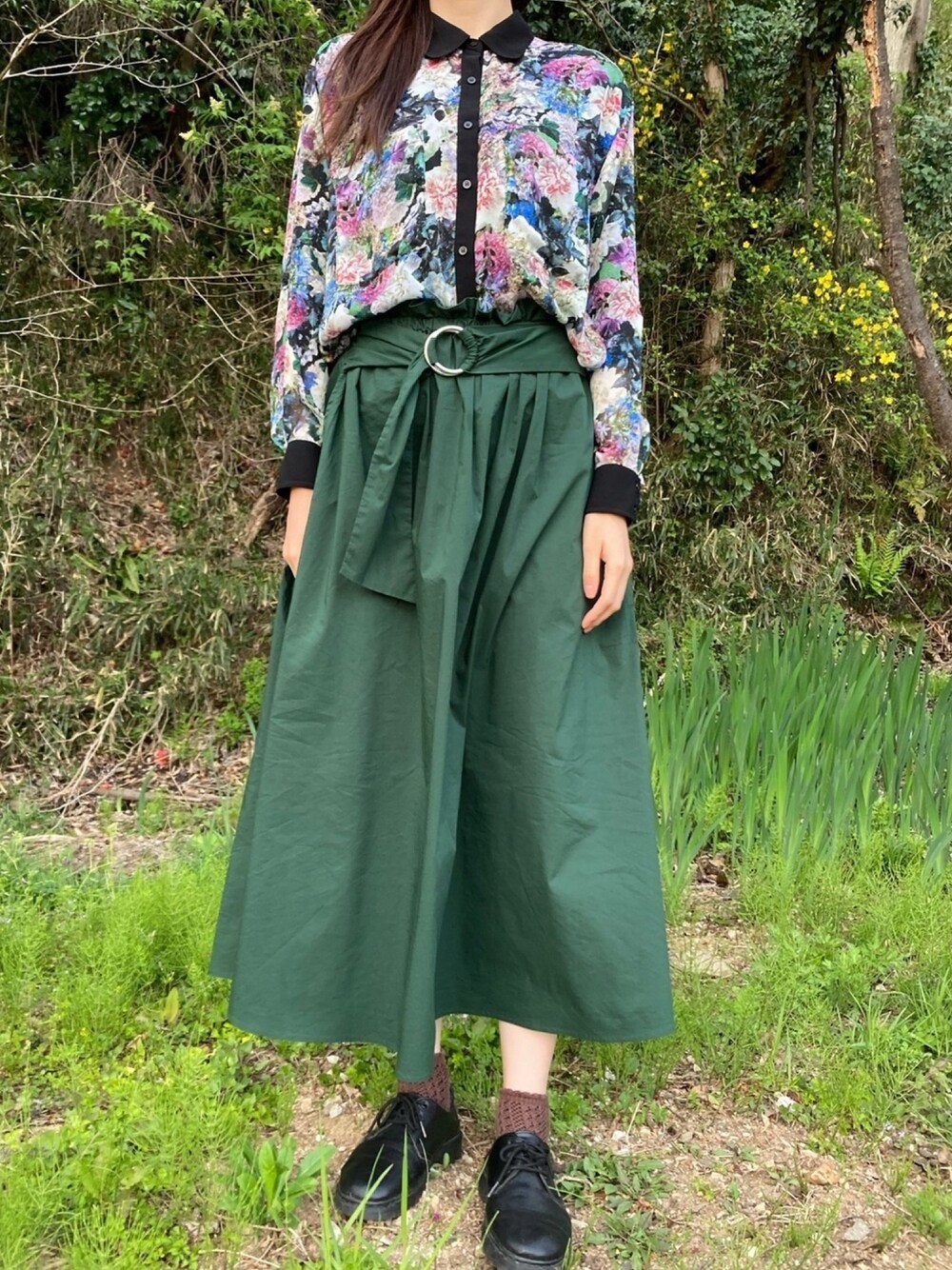 botanical🌱🌼 この派手柄のシアーシャツ、 着回しが効きやすいので好きです♡ シャツ×ロンスカのシンプルコーデが、 柄を持ってくるだけで、一気に華やかに。