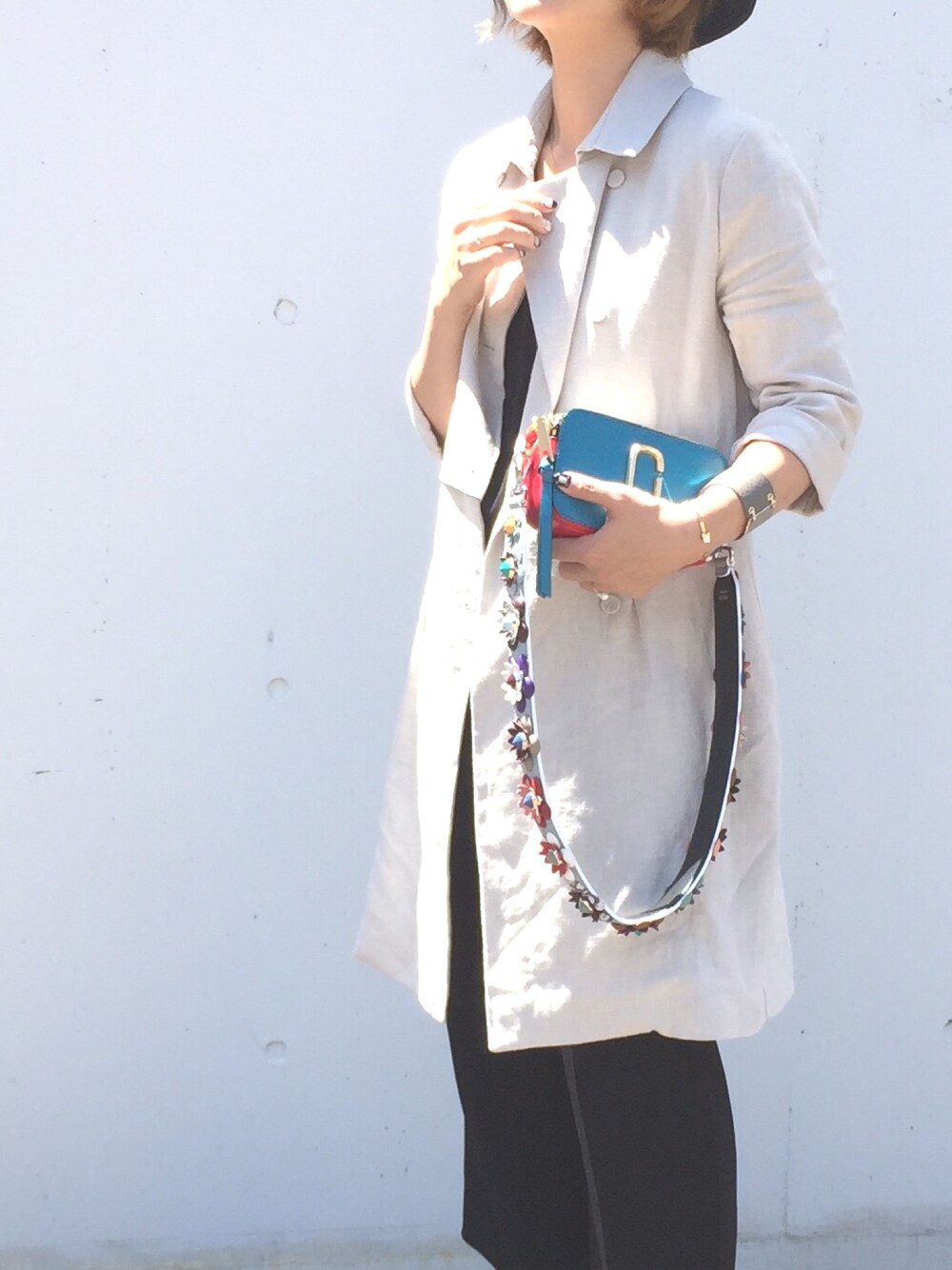 シンプルコーデには 少し派手なバッグでポイントを♡ リネントレンチはサンプルです^ ^
