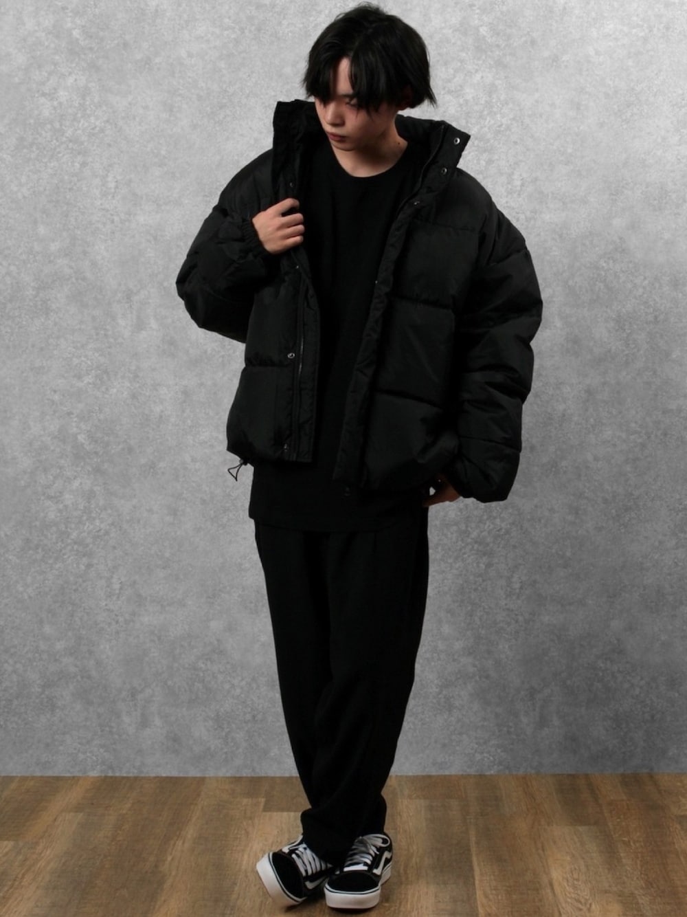 kanaruのダウンジャケット/コート「オーバーサイズ スタンドカラー ファイバーダウン ショートジャケット」を使ったコーディネート