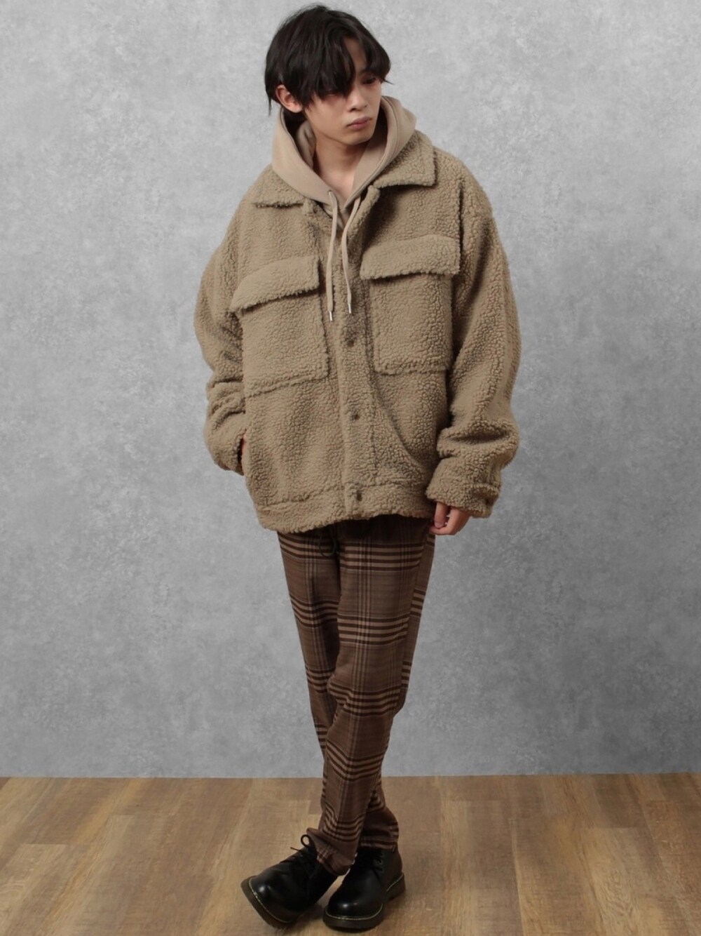 ご覧いただきありがとうございます。 ZOZOTOWN 11/25(水)オープンのセレクトショップ。 「make a ray!」モデルのkanaruです! 本日はベージュ&ブラウンコーデです! ボアジャケットはオーバーサイズで着用 するとトレンドの着こなしになります😄 インナーはカジュアルになり過ぎないように色目を合わせました😄 ボトムはブラウンチェックを合わせましたが、もちろん定番の黒スキニーでも😁 今後も新作アイテムなどアップしていきますので、宜しくお願い致します🙇♂️ ZOZOTOWN店にて本日のコーディネートは購入可能です😄 いつもご覧いただきありがとうございます。