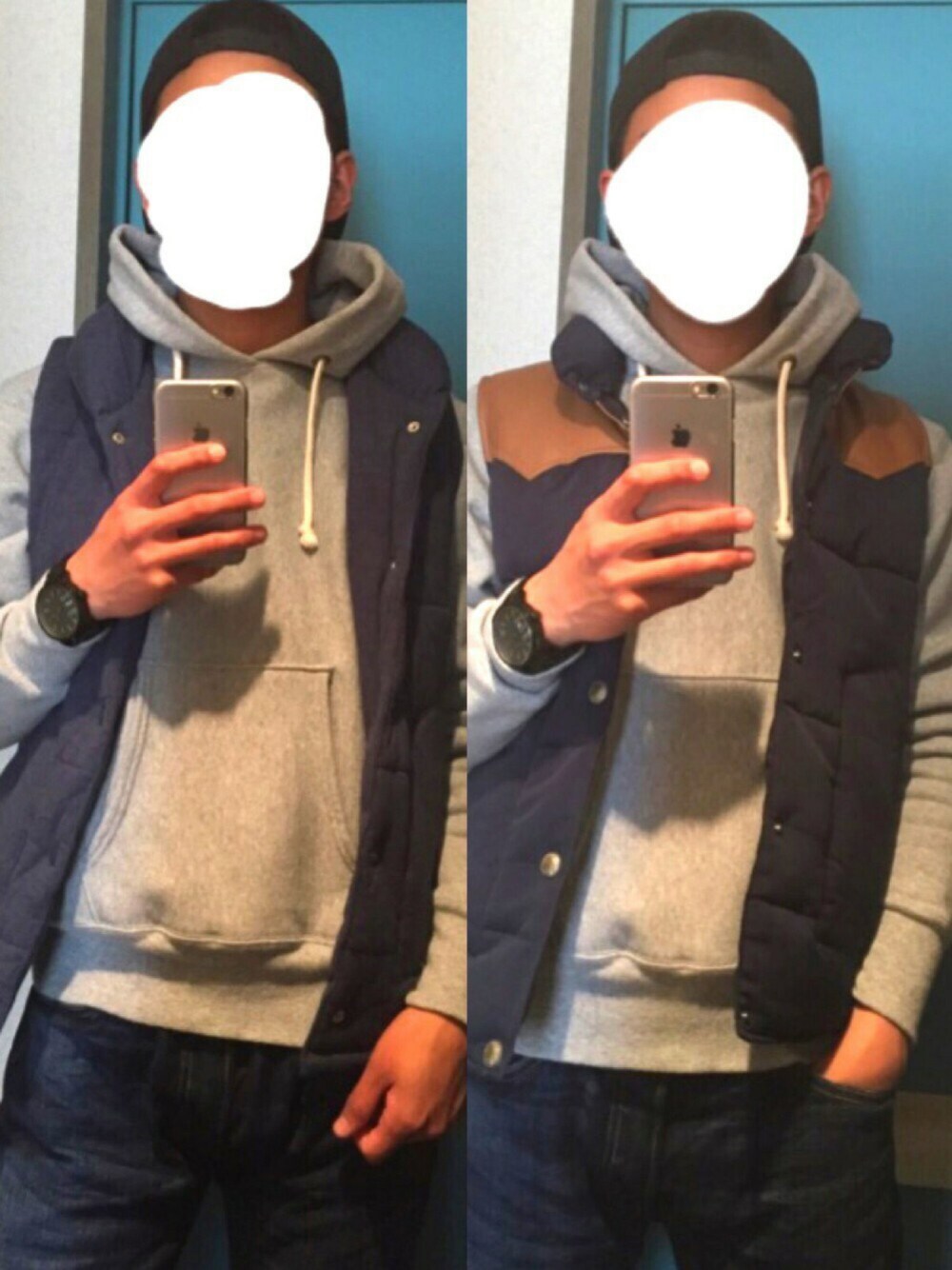 定番のパーカーとダウンベストの組み合わせです! 似たような色のダウンベストしか持ってなかったので比較で載せてみました。切り替えしの有り無しどちらが良いでしょうか? そして腰から下はいつも通り笑 給料入ったら春っぽいボトムス買うでぇ∧( 'Θ' )∧