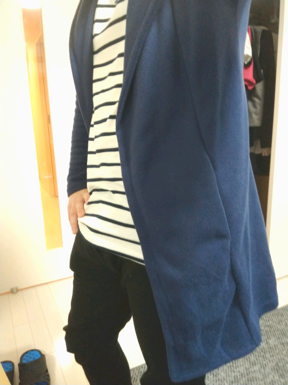 4/1 初の私服通勤。 コーディガンとパーカーディガンの間みたいな服。中国製ですこし作りが甘かったけどデザイン○
