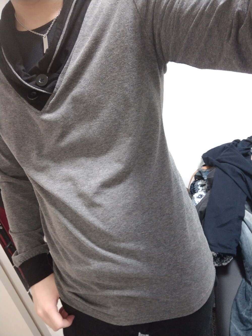 4/6 このトップスは襟周りの作りが謎すぎて着るのが面倒でした。 ただすこし騒がしいので、1枚でおしゃれ感を演出してくれるナイスな奴です。