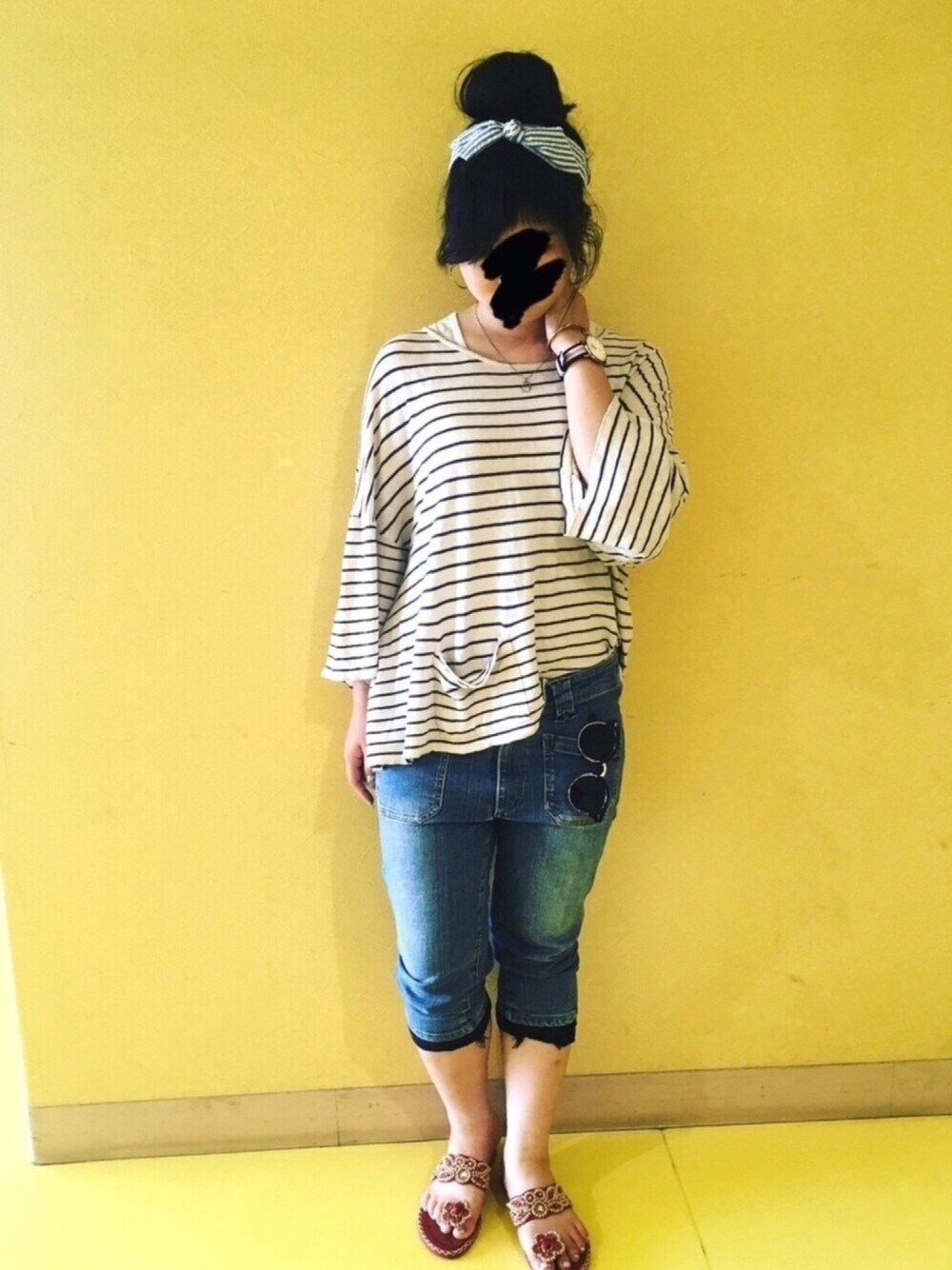 今日はお団子ヘアー🐤🍡💕 ターバン風カチューシャでルンルン🎶💖パパがベトナム🇻🇳のお土産でくれたサンダル👡でルンルン🤓💓結果、今日もルンルンday😂👍💞