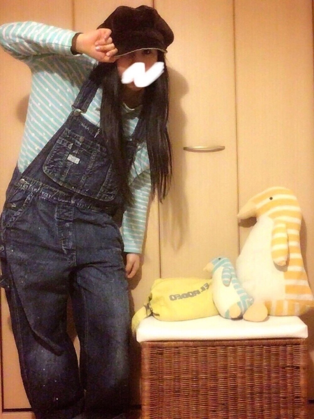 今日のトップスはノベルティのペンギンちゃんとほぼ同じ柄です👕💕オーバーオールもとってもお気に入り😍💋
