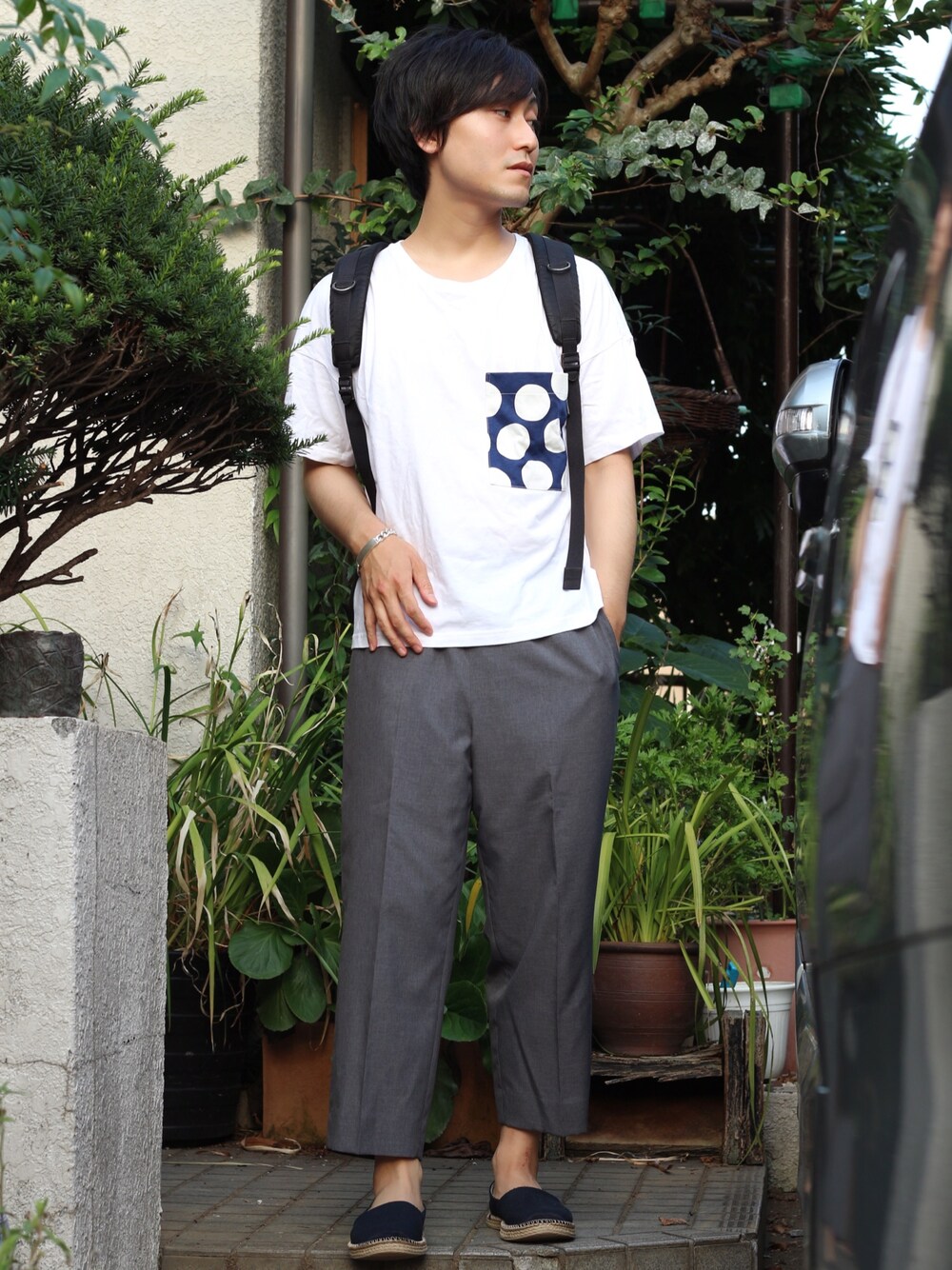 いつも見て頂いてありがとうございます!秋冬が楽しみですね! 二日酔いからの迎え酒で相当参ってるkitamuです。暑いのでビールが止まりません🤣笑 今日はユニクロの水玉Tにウエストゴムのスラックスを合わせた リラックスコーデです。足元は一応青を拾って見ました。 みなさまくれぐれも体調には気をつけてご自愛下さい。 コメントなどは気楽にどうぞ。お待ちしてます。