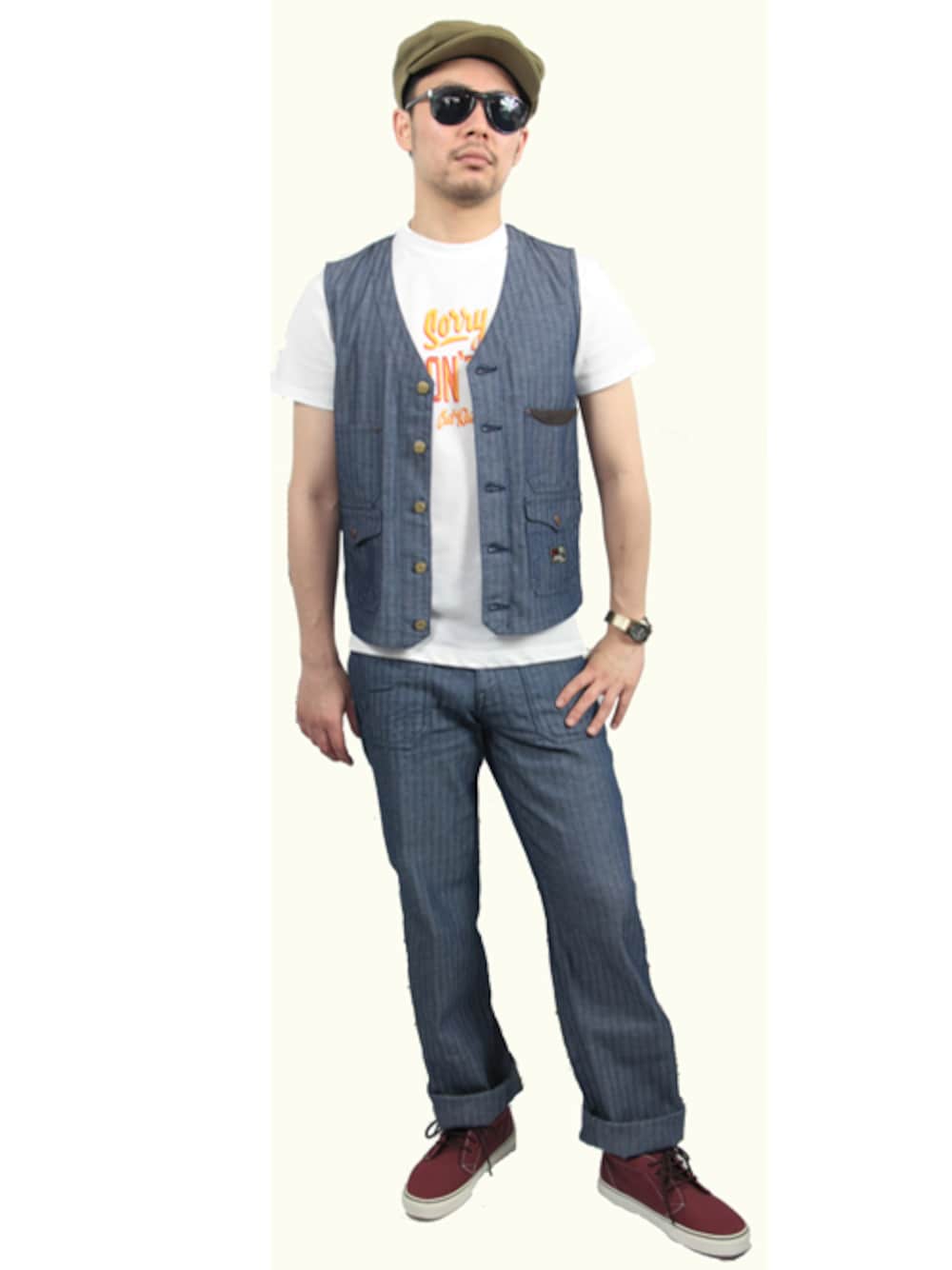 カットレイトのセットアップに帽子と靴の色合いでうごきをつけてみました。