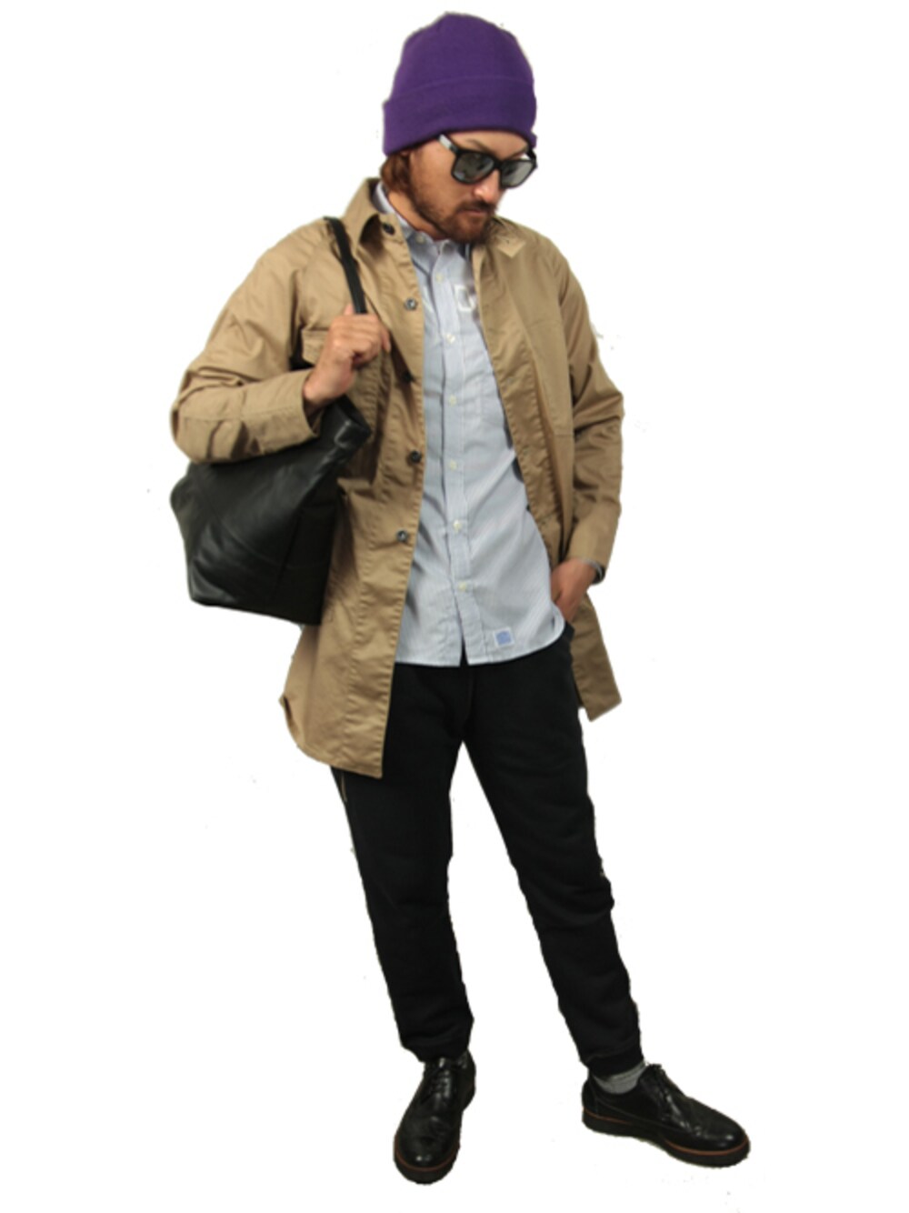 430のカバーオールとシャツをベースにスタイリングしました。 430のカバーオールはシルエットを重視して、ジャストサイズを着用しています。ストレッチ素材ででき ているのでジャストサイズできてもとても動きやすいです。 かぶりものをビーニーにする事で、ややカジュアルな印象に。