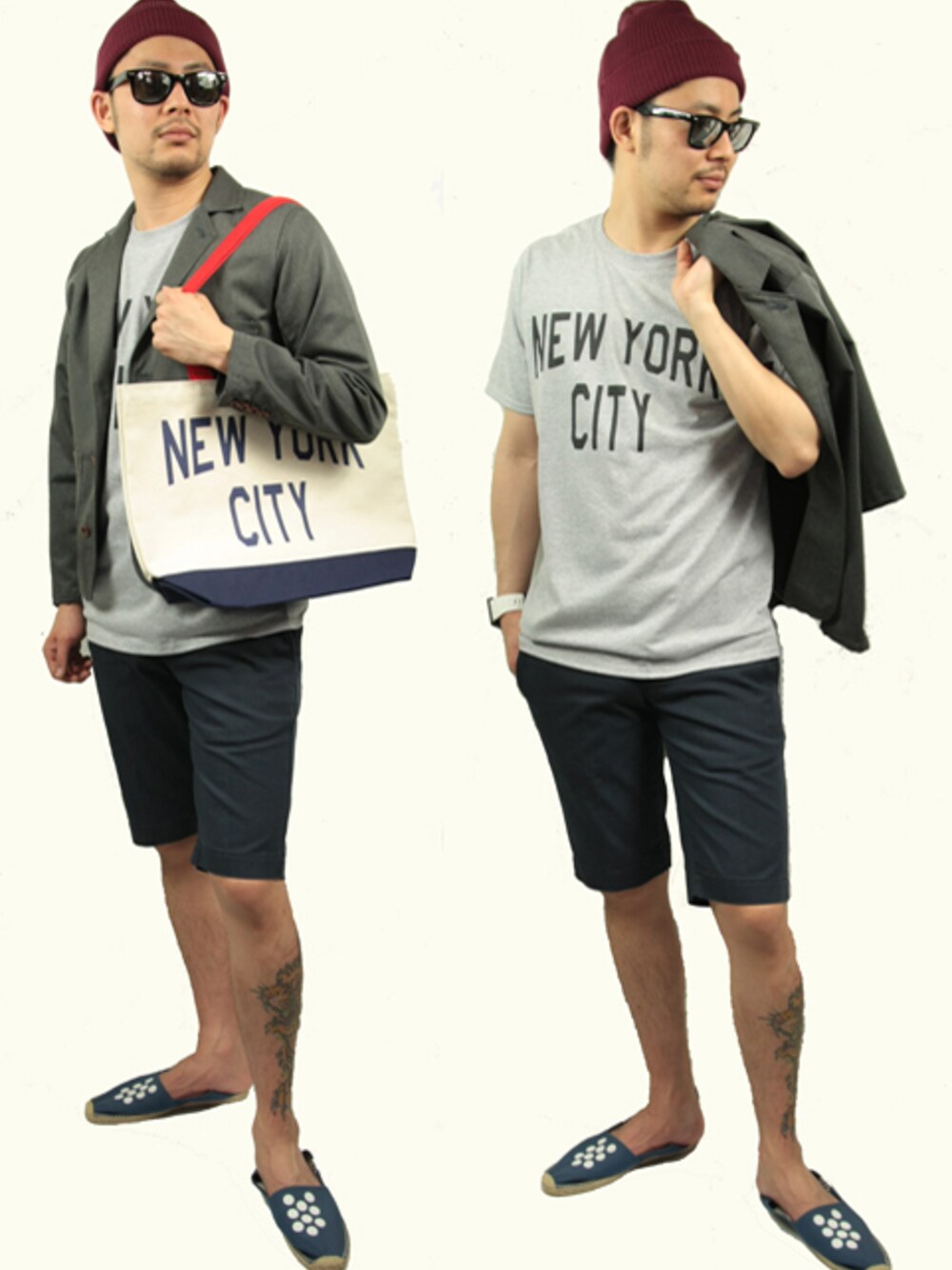 ダークトーンのTシャツとパンツに帽子やバックで動きをつけました。 靴とジャケットの相性も良いので、ジャケットをはおれば更にカッチリした印象に。