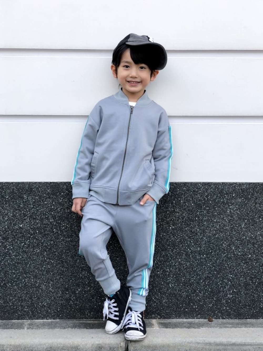 makeyourday_officialのブルゾン「【リンクコーデ】ドロップショルダージャージブルゾン■90~140cm」を使ったコーディネート