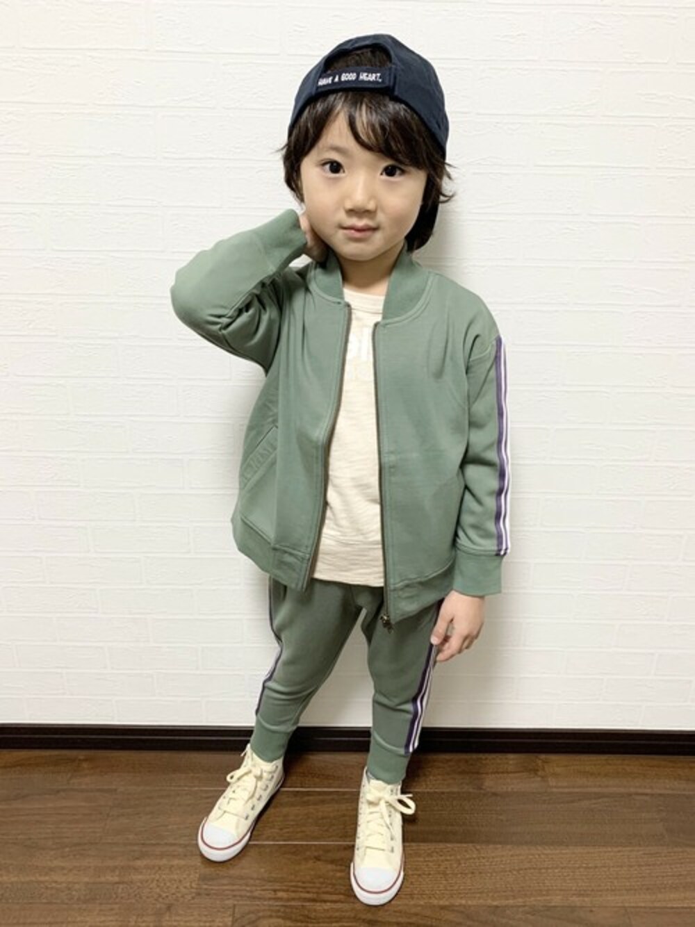 makeyourday_officialのブルゾン「【リンクコーデ】ドロップショルダージャージブルゾン■90~140cm」を使ったコーディネート