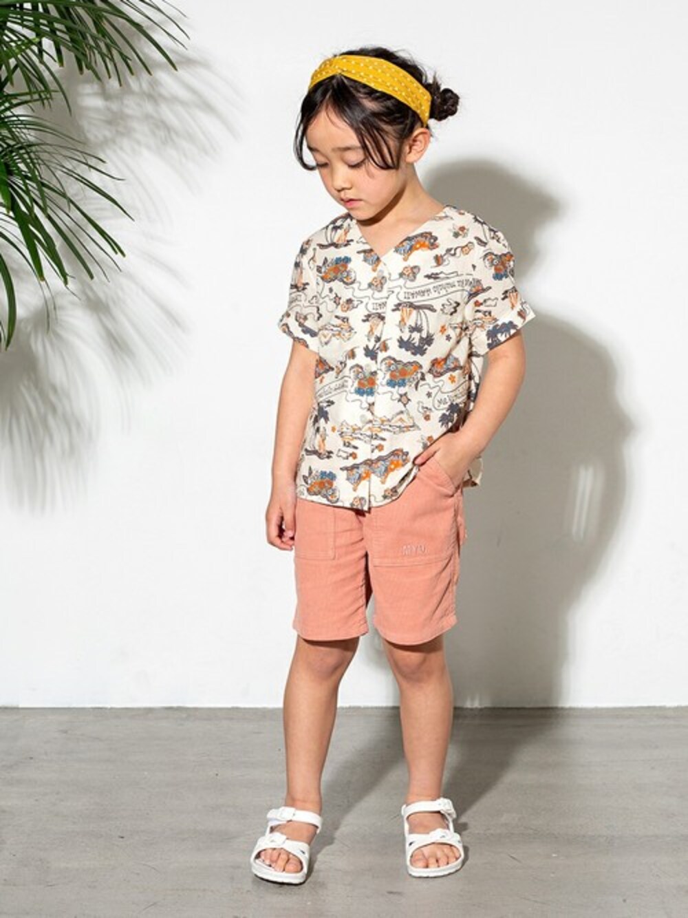makeyourday_officialのシャツ/ブラウス「【リンクコーデ】ノーカラーアロハシャツ(レトロ)■80~140cm」を使ったコーディネート
