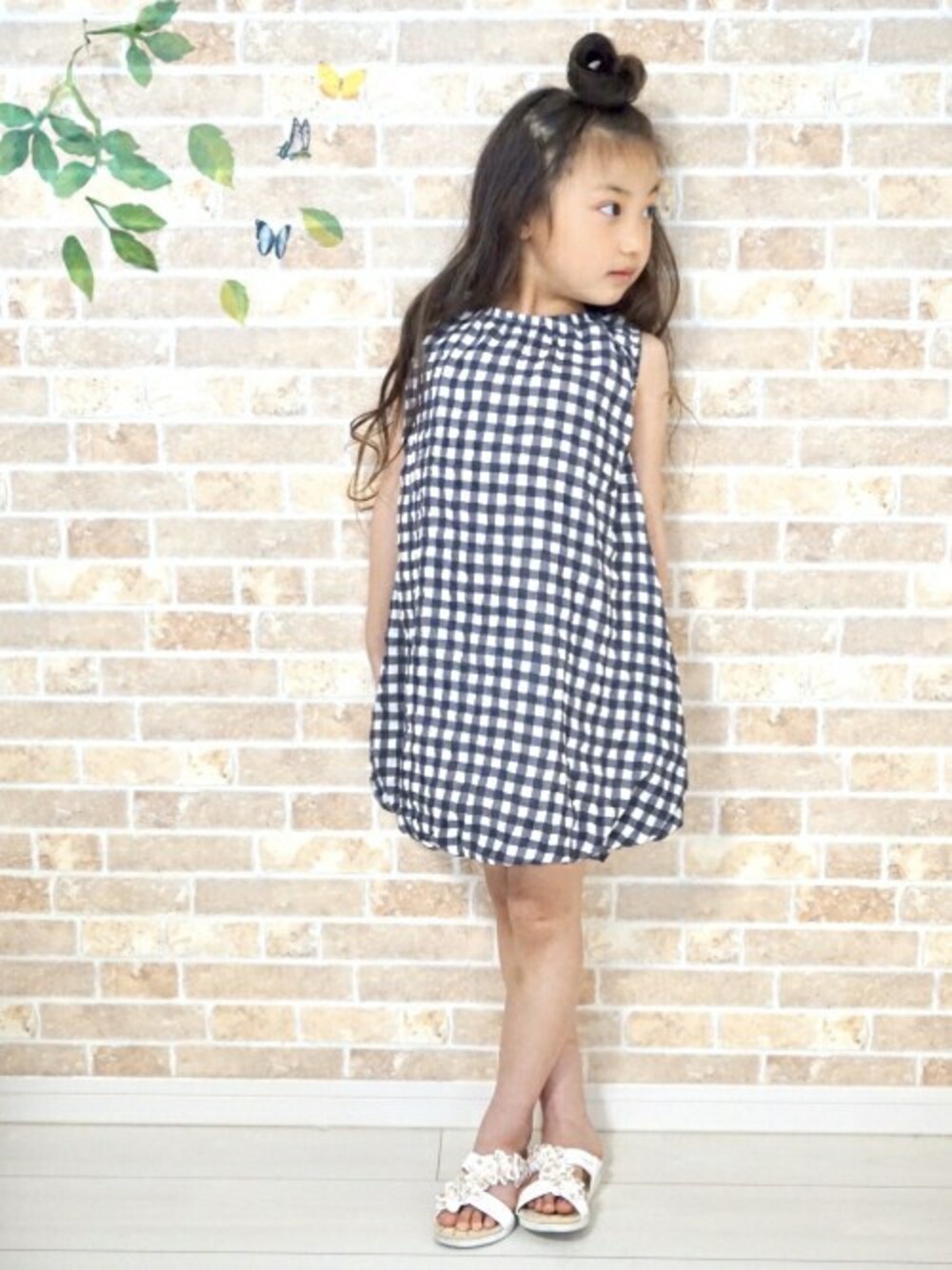 makeyourday_officialのワンピース「ギンガムバルーンワンピース■80~140cm」を使ったコーディネート