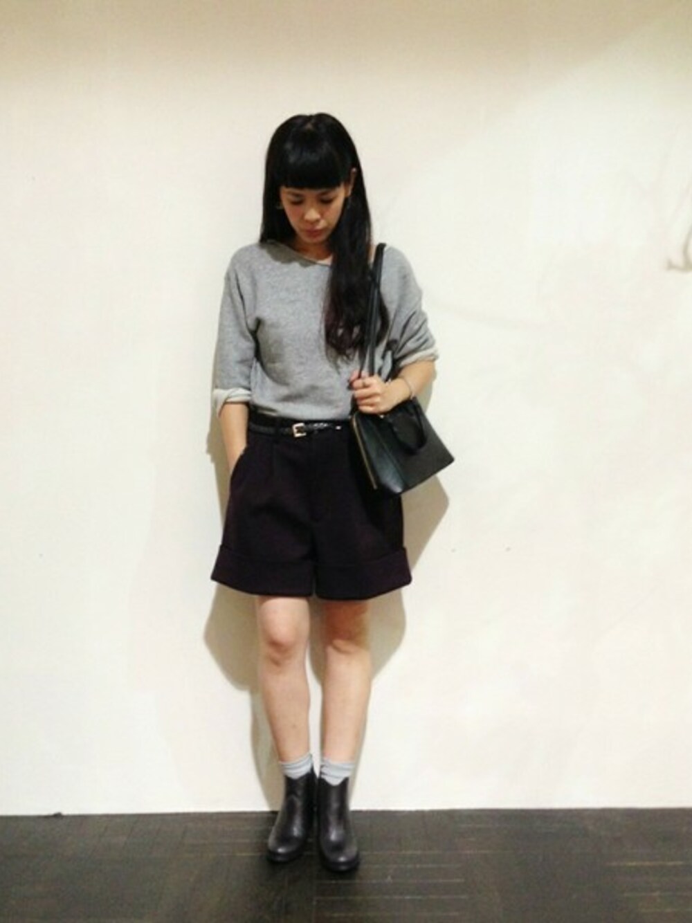 カジュアルなスウェットも、ウールの上品なパンツに合わせて秋仕様に。