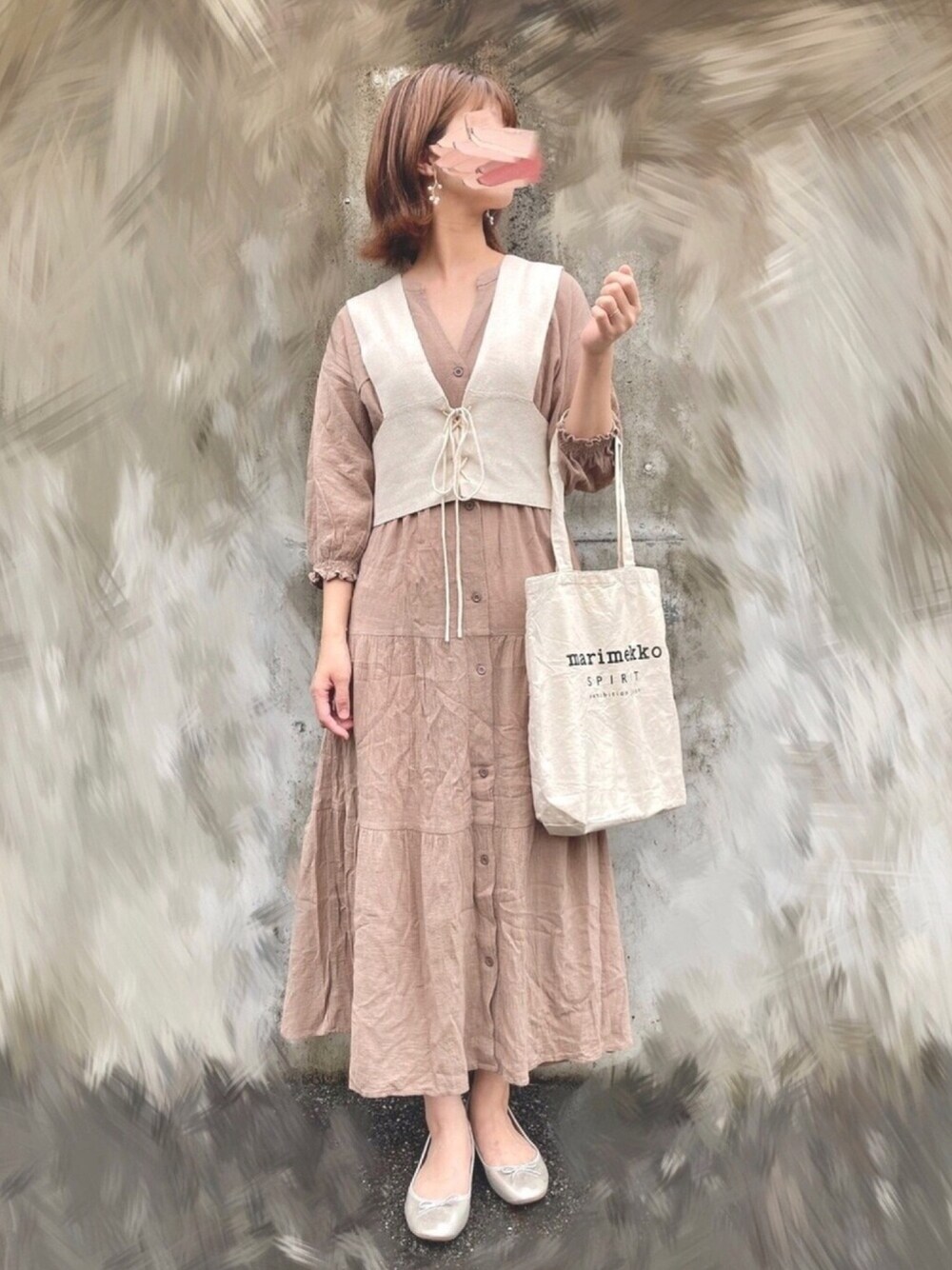 ぷしゅのワンピース「前開きティアードワンピース」を使ったコーディネート
