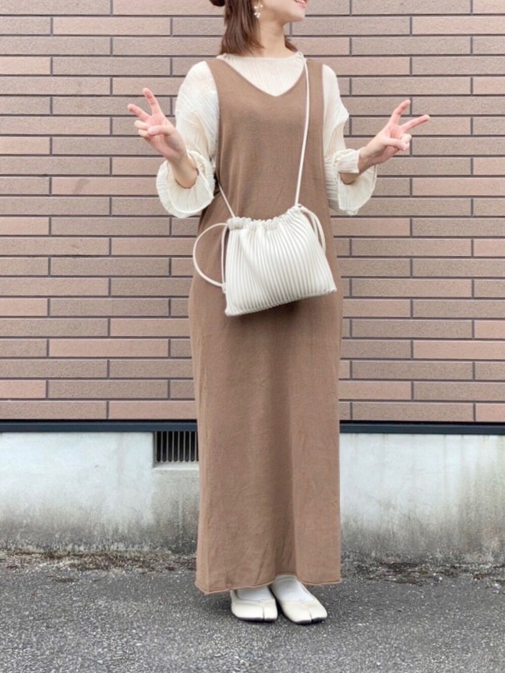 ぷしゅのワンピース「コードヤーンニットワンピース」を使ったコーディネート