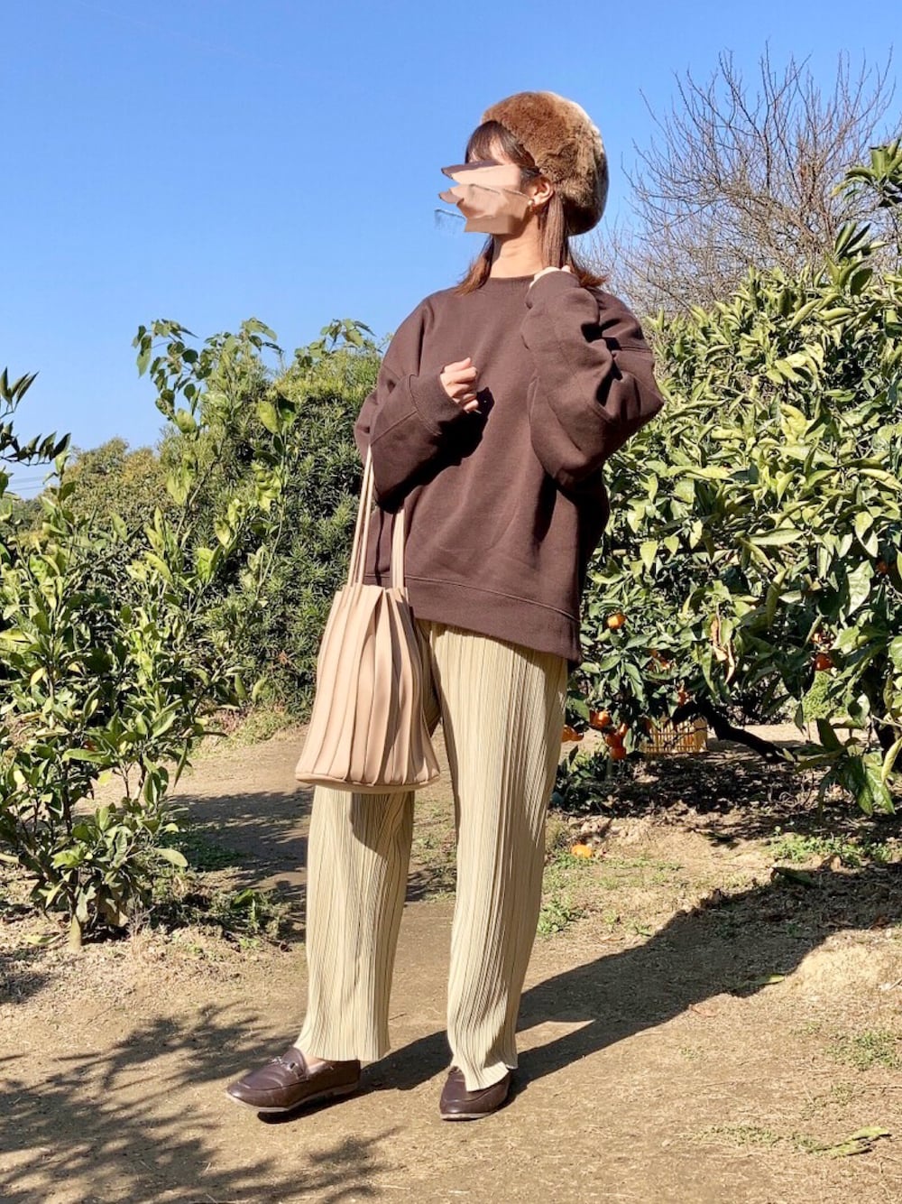 おはようございます☼ 閲覧、いいね、フォルダin ありがとうございます🧺 ブラウン × イエロー 💛🤎 今までにない色味の組み合わせを してみました🐾 お気に入りです🌝 🍊狩りました 🧺