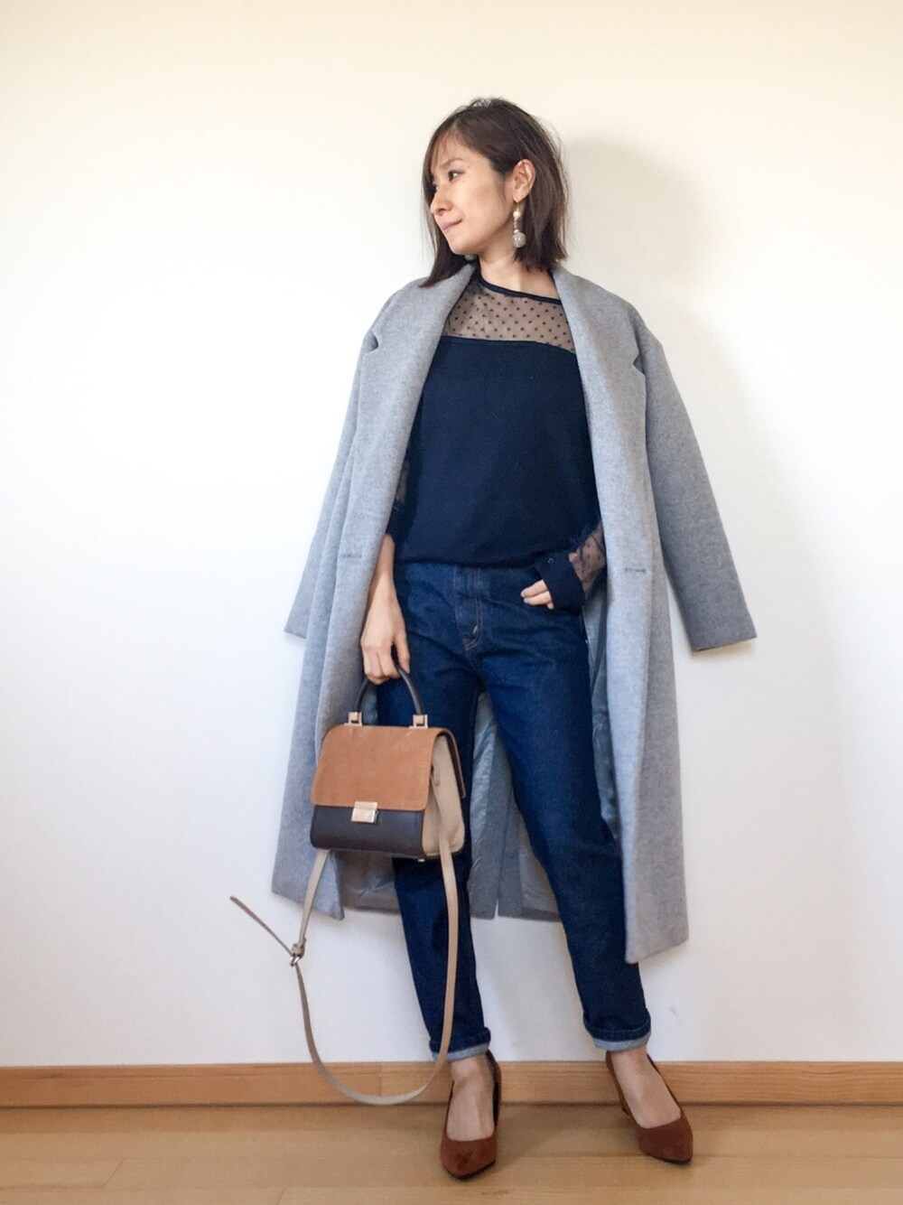 ちょっと友達と、パーティ😊✨ デニムでも、トップスの透け感でちょっとパーティっぽくしてみましたー❗️ ばぁばにクリスマスプレゼント買ってもらってご機嫌な息子くん(^ ^)!