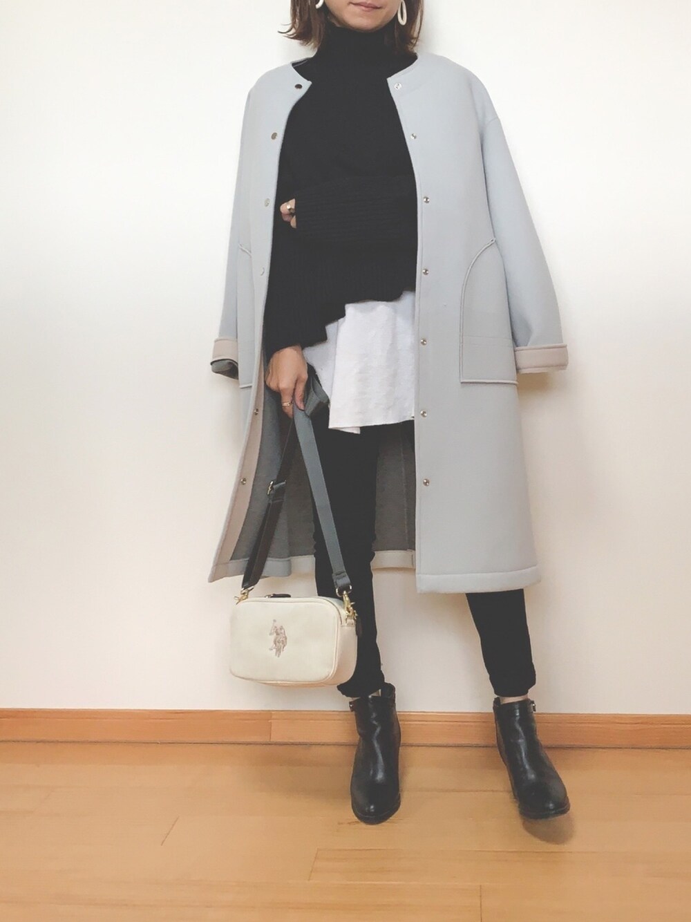 このコートの張り感、形、シルエットめっちゃ使いやすいです❣️ 後ろから見た方が可愛いんだーー💕