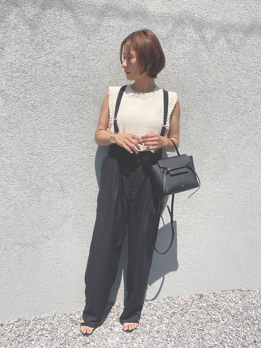 Haru☆のサロペット/オーバーオール「【 notch.by yui 】サスペンダー付きハイウエストパンツ S/S」を使ったコーディネート