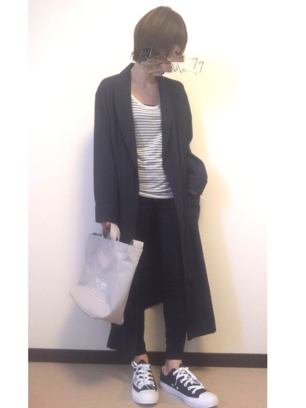 ご覧下さりありがとうございますʕ•ᴥ•ʔ🍎🍁 上手く写真が撮れず… カラー見にくいですが、バッグ以外はネイビーでまとめてあります。 大分前のアウターは緩く着たいので、ウエストのベルト?は外しています🙌 前回も、♡、お気に入り登録ありがとうございますʕ•ᴥ•ʔ🍒✨ 嬉しいです🙏✨