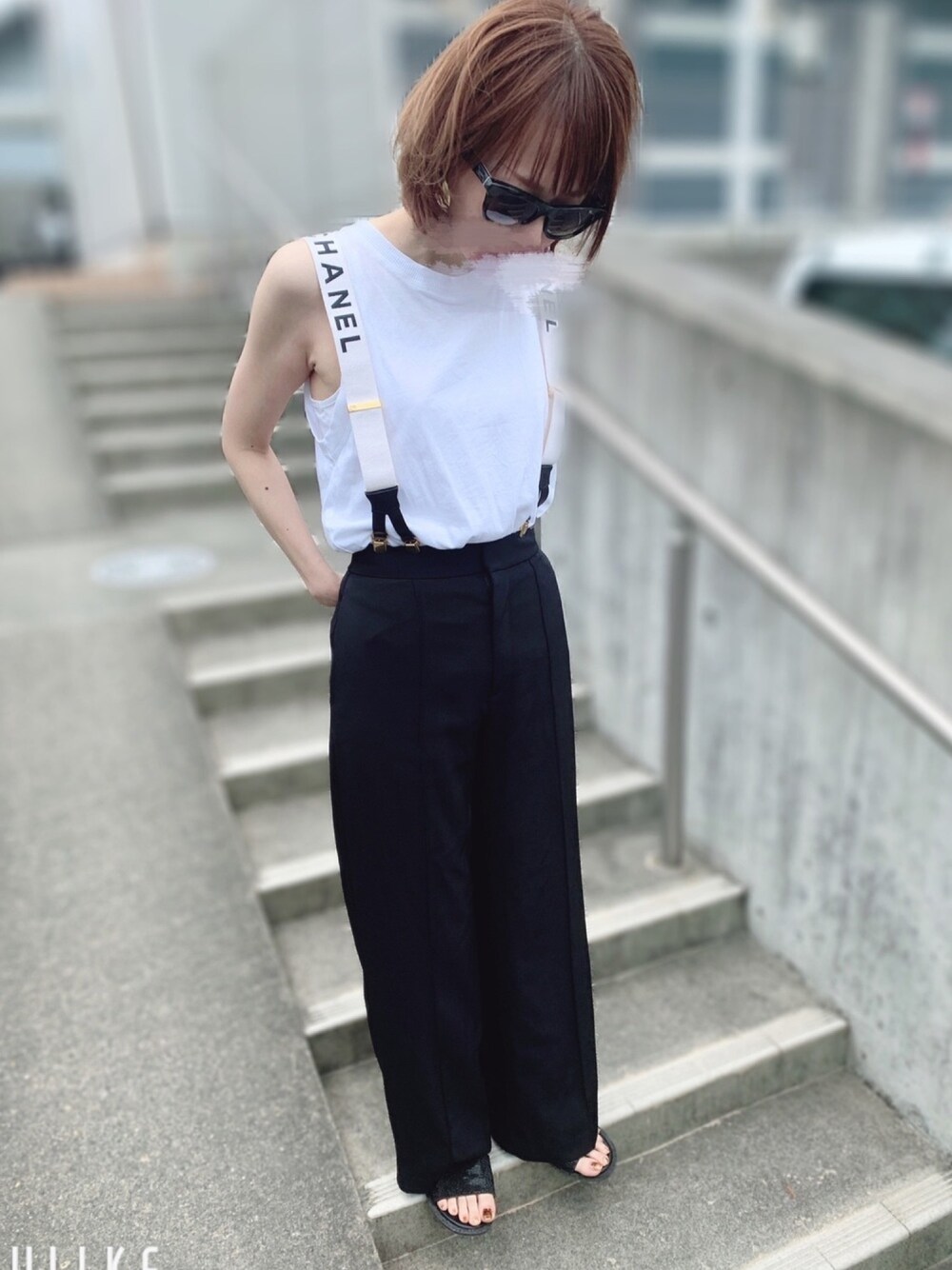 ご覧頂きありがとうございますᐠ( ᐢ ᵕ ᐢ )ᐟ🌞🌴🌺✨ サスペンダー・サングラス:CHANEL モノトーンコーデદ=๑๑( ੭ ε:)੭⁾⁾ いつもありがとうございますᐠ ♡ ᐟ