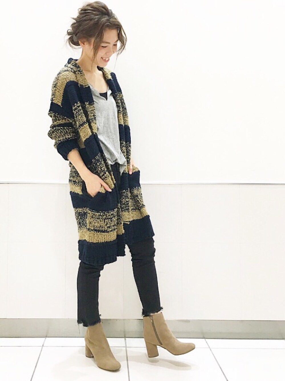 makiのカーディガン/ボレロ「ミックスヤーンニットカーデ」を使ったコーディネート
