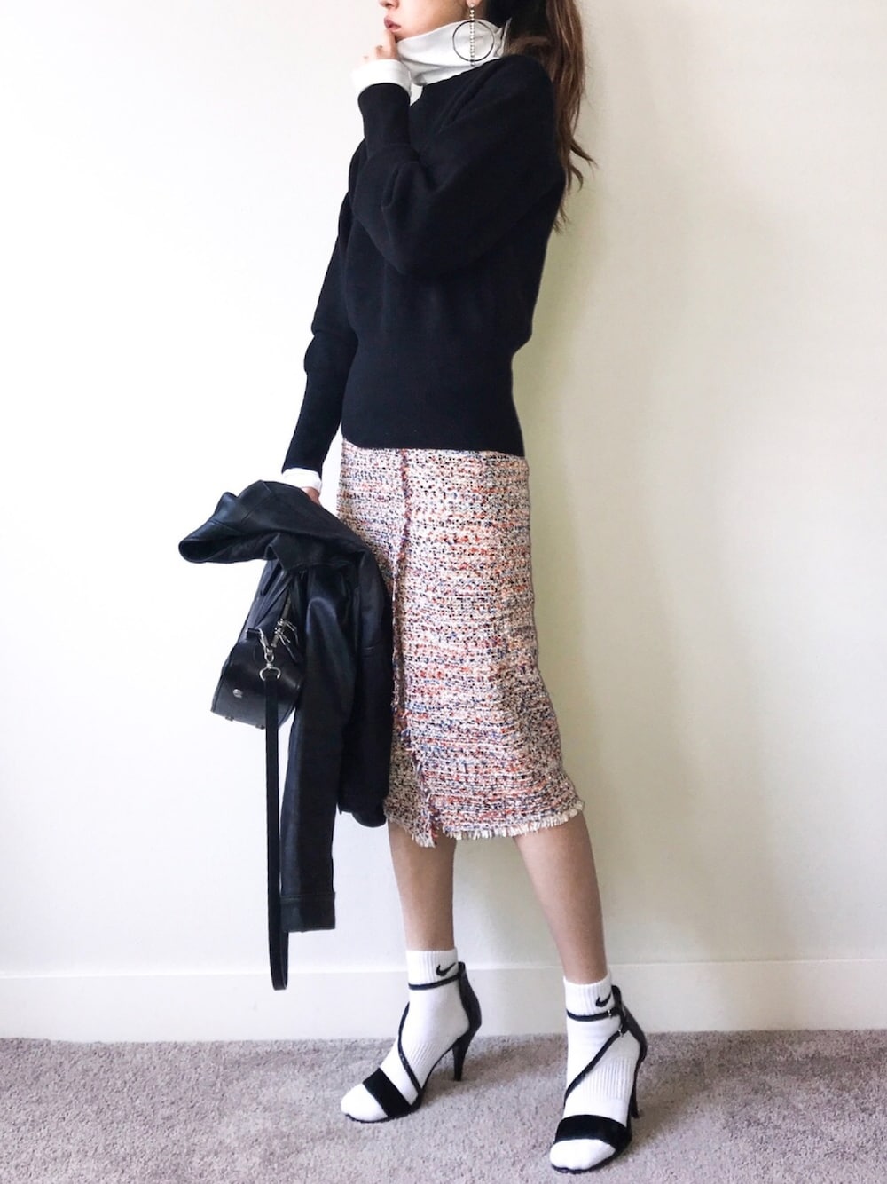 いつも見てくださり本当にありがとうございます。 いいね、セーブ、フォローとても嬉しいです☺︎ H&Mで安くしてたので 初めてツイードスカート買いました。 カジュアルに着てみたいなと思い✨ 足元スニーカーと迷いましたが、 今回はNIKEのソックスでスポーティにしました😊 次はスニーカーにも合わせたいです👟 ファストファッションコーデ☆