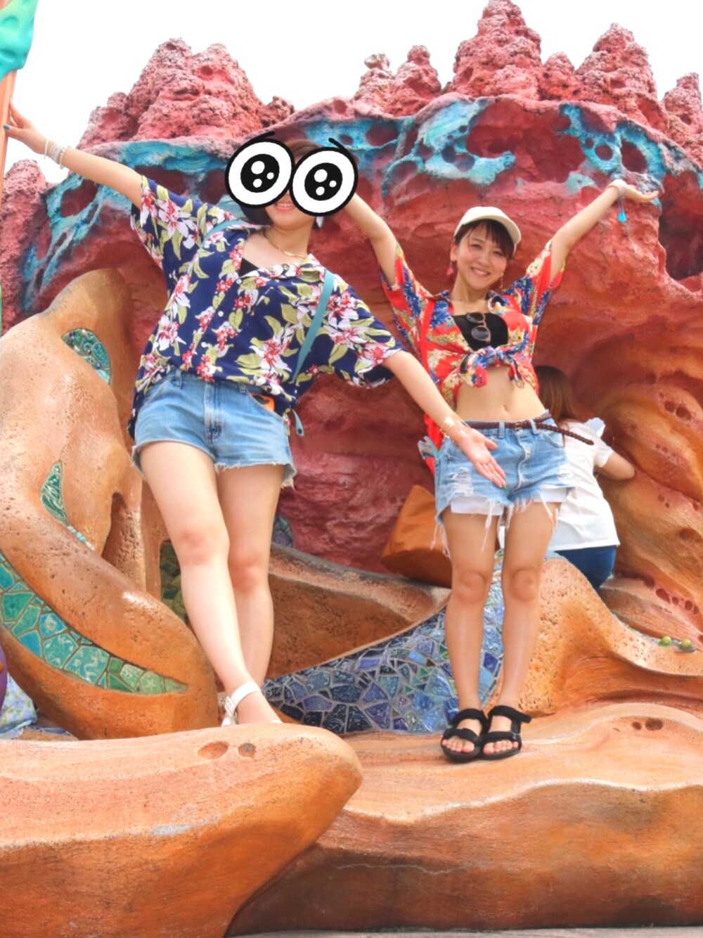 ディズニーおそろコーデ\(^o^)/ 前日に横浜中華街でアロハシャツを調達して即興おそろコーデの完成です💓