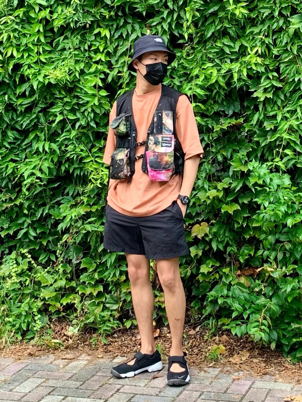 #真夏のアクティブスタイル キャンプやらフェスやらに行きそうだけど、この格好で盆踊りに行ってました🙄 このベストポケットがいくつあるかわからないぐらいあって、バッグ並みに収納力があるので手ぶらでいいところがうれしい✌️