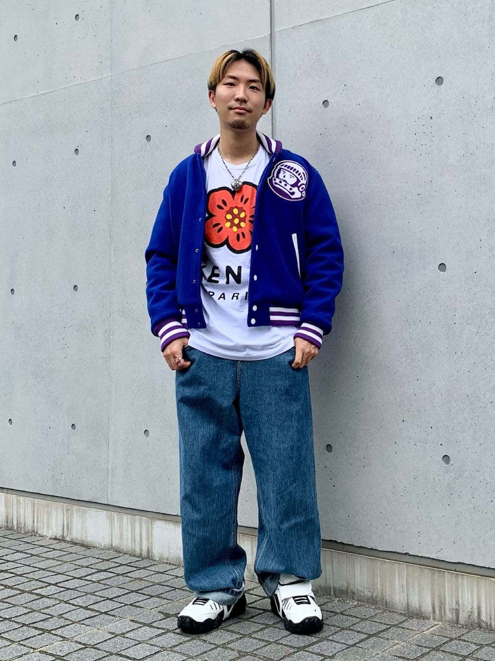 セールで購入したBILLIONAIRE BOYS CLUBのスタジャンを使って撮影💫 めちゃくちゃ暑かったけど、やっぱ配色がいい🥳 寒くなったらヘビロテしよっと。