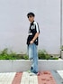 macky☺︎のポロシャツ「オーバーサイズユニフォームロゴポロシャツ」を使ったコーディネート