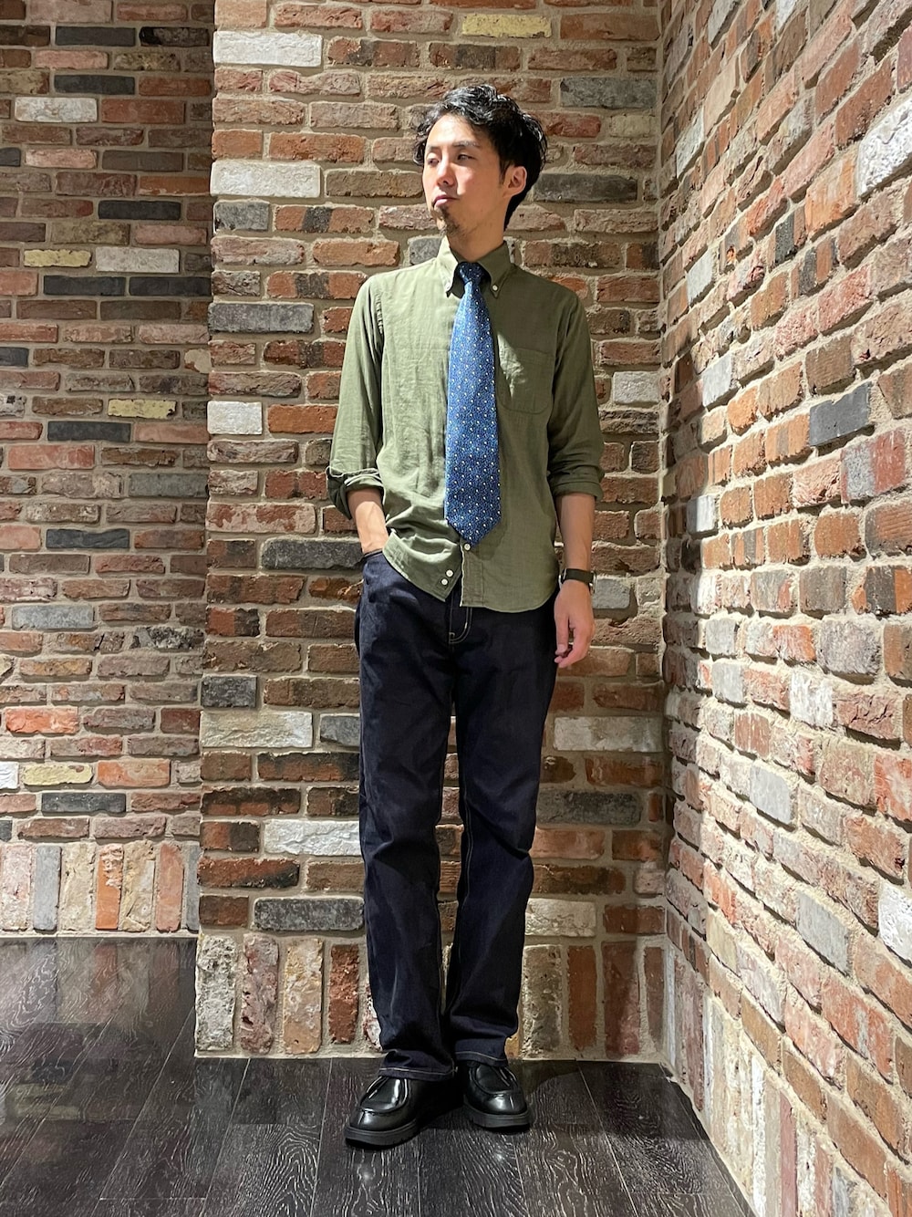 タイドアップスタイルしたいなと思っていたところに、ちょうどキレイめカジュアルのピックアップがきたのでコーディネート。 パンツはデニムでカジュアル感強めにし、ネクタイと色みを合わせてみました。