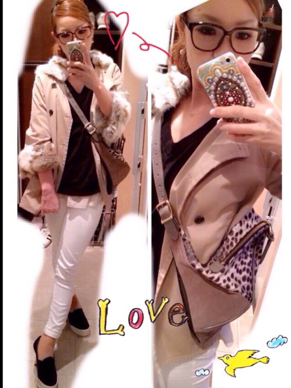トレンチコート☆メルローズクレール トップスビームす パンツ☆フリークスストア パンプス☆ピッピ バック☆アクアガール このバックは大人ミューズにも掲載♡昨日買ってきたばかりのアクアガール別注のバックです♡