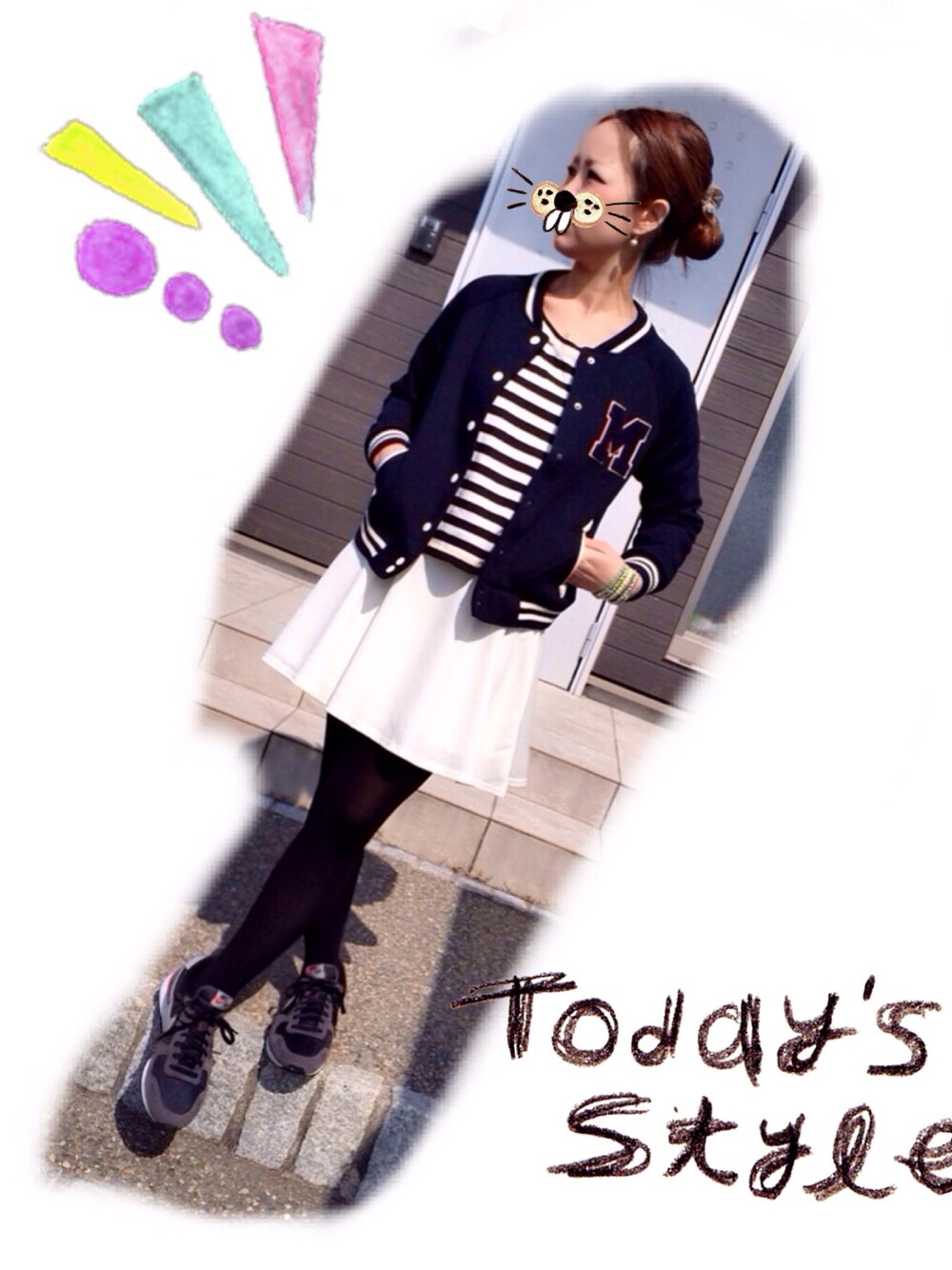 トップスアウター☆しまむら ボーダートップス☆イエナ ブレスれっと☆イエナ スカート☆gu スニーカー☆ナイキ アウター2000円!スカート1400円! プチプラ〜♡