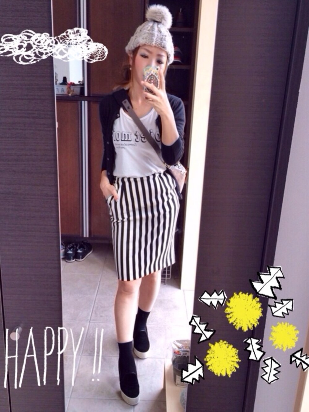 このペンシルスカートはアクアガールのバイイングのPARLMASELのもの。履きやすく気持ちのいい素材でヘビロテ♡ もう暖かくなってきたので中はTシャツでいいみたい!カーではUNIQLO。