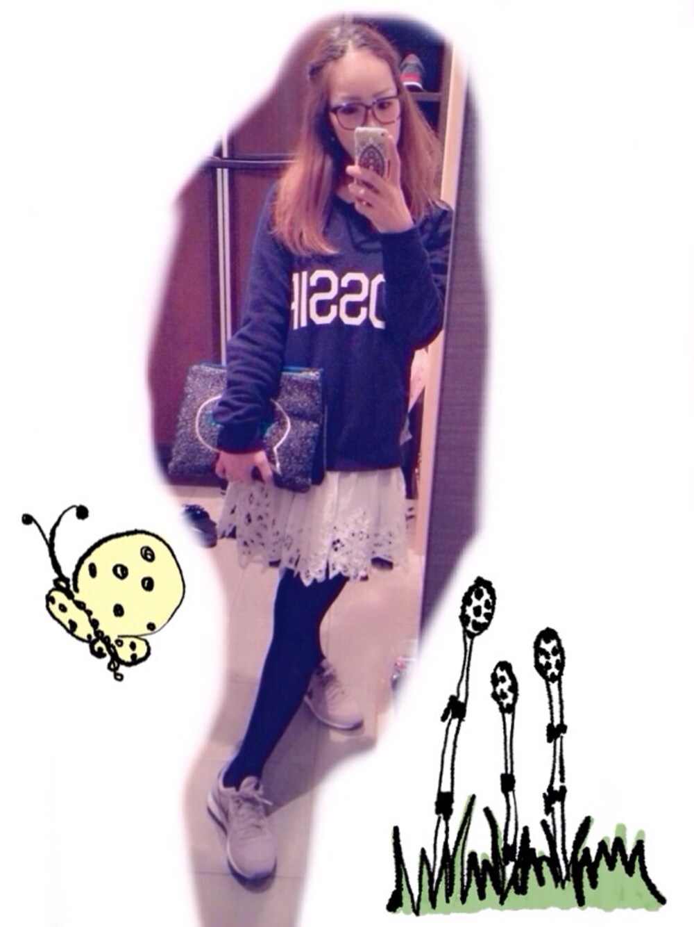 スウェット☆アクアガール 中に来たチュニック☆ロッソ バック☆アナザーエディション シューズもバックもリボンにも少し綺麗なグリーンを♡ 春ぽくて暖かい日(๑╹ω╹๑ )♡
