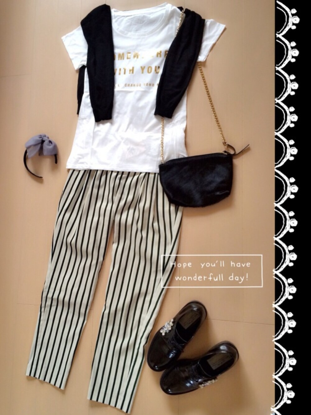 トップス☆リーファー パンツ☆リーファー カチューシャ☆ラドロー シューズ☆ピッピ メンズライクなプレッピー、モードスタイルなんでカチューシャで女のコぽく♡ 伊達眼鏡、つけるの忘れたぁ、、