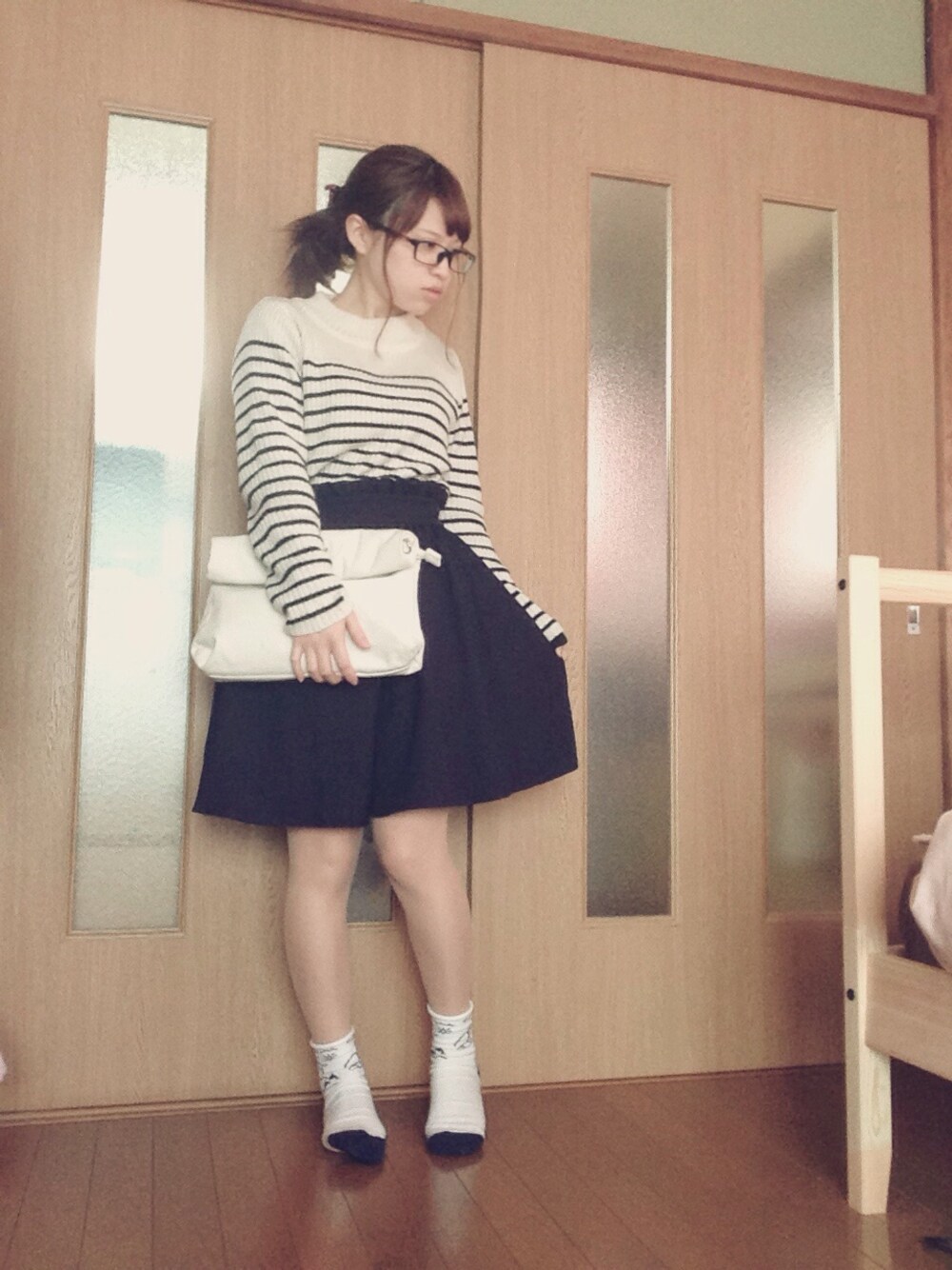今日は℃-uteのコンサートなので メガネかけて万全体制で参戦♡ 男性ファン多めで 背が低いと見えないことが多いので これにヒール履いていきます꒰ ´͈ω`͈꒱ ℃-uteはみんな可愛くて キラキラしてて憧れです ✩ ボーダーニットと靴下で 少しマリンな感じにしました! そして、フォロワーさん 100人超えました♡ありがとうございます