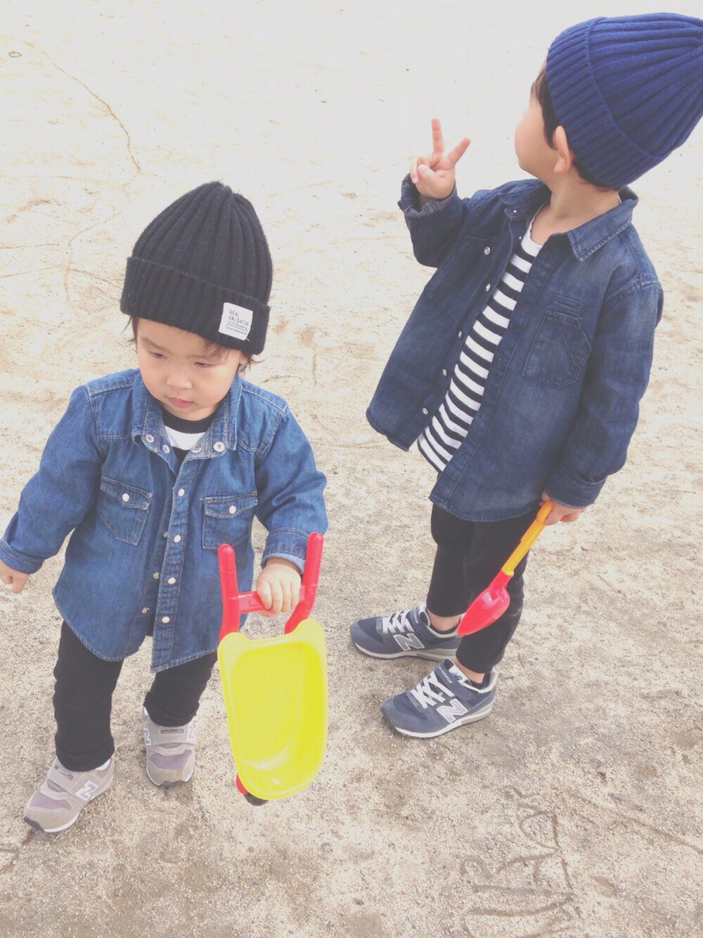 兄弟リンクコーデ⑅◡̈* ボーダートップス以外は全部同じお店です♡