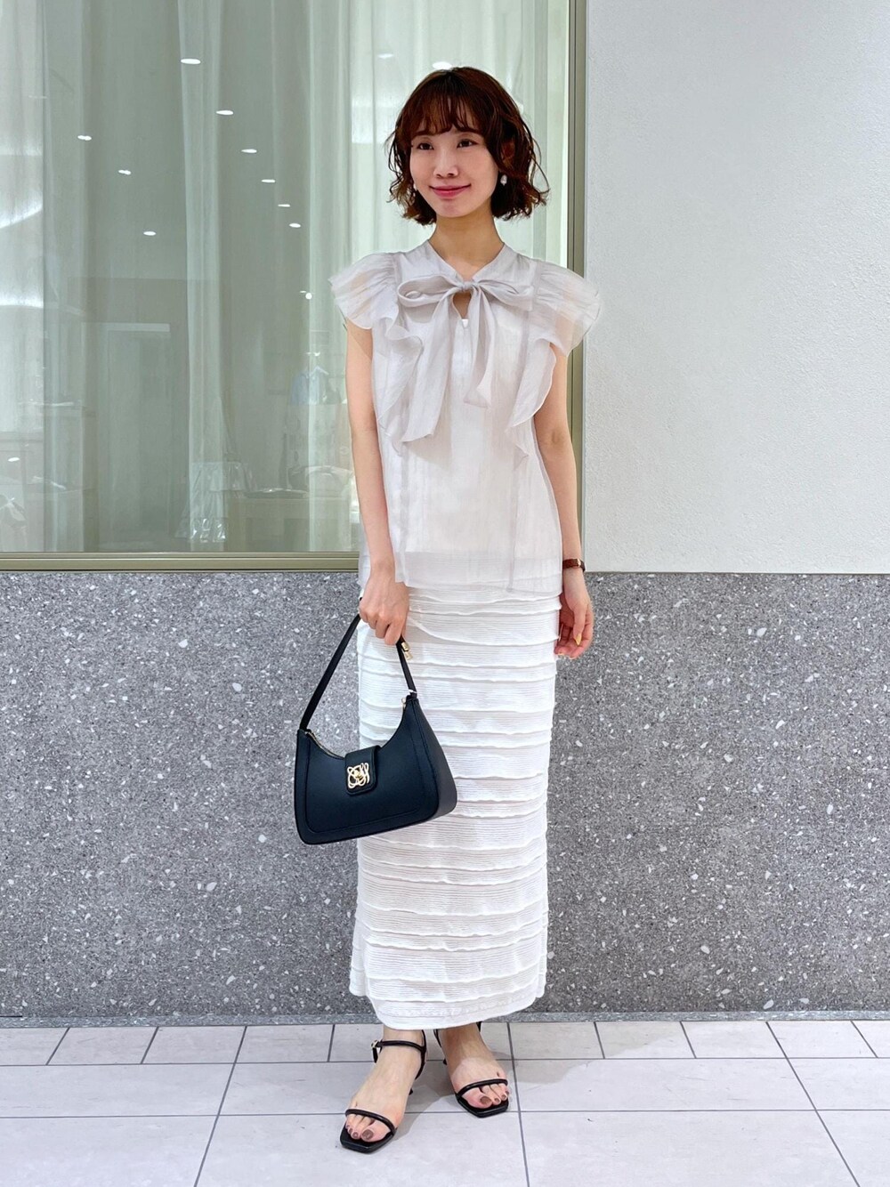 シアーなボウタイブラウスが上品なきれいめコーデです。 フリルスカートはストレッチ性がある素材で、女性らしさと動きやすさのどちらも叶うので外歩きのデートにも◎ 気になられた投稿は是非ハートをタップで お気に入り登録してください♪ 在庫のお問い合わせや商品、コーディネートのご相談などLINEで名古屋パルコVISスタッフにご相談は【友だち追加】をタップ!! <a href="https://lin.ee/1XZNtpR"style="background:url(https://scdn.line-apps.com/n/line_add_friends/btn/ja.png); background-size: contain; display: block;width: 116px;height: 36px; margin:.5em 0;"></a> ↓タグをタップするとオススメスタイリングがみれます。